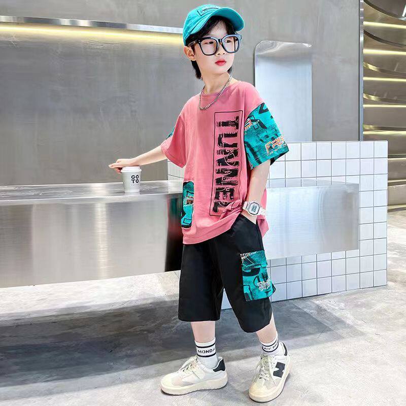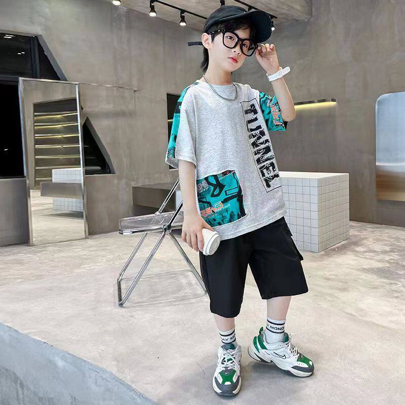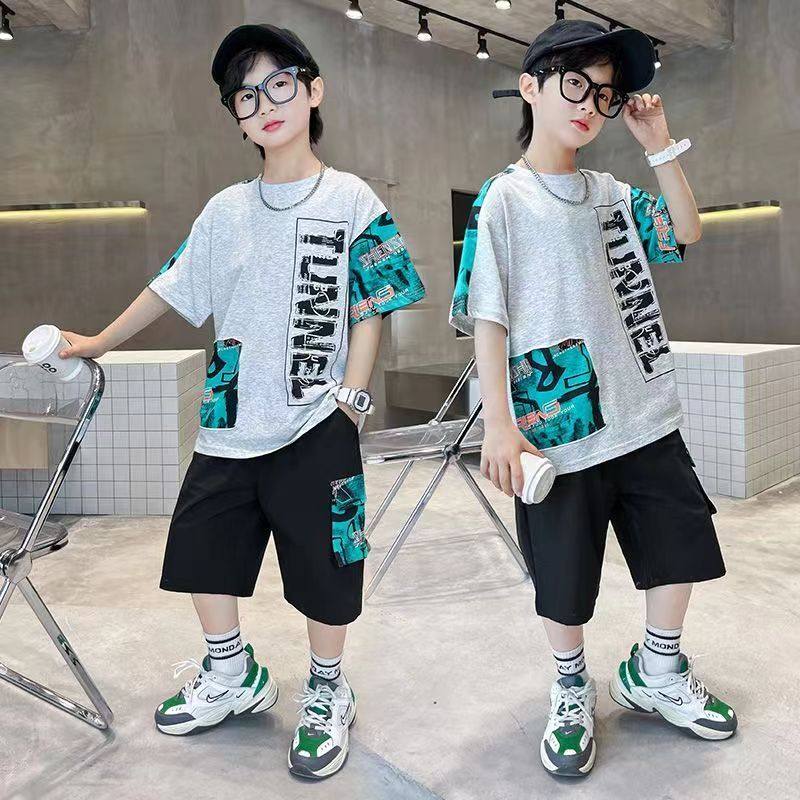 儿童装男童夏装短袖套装2026夏季新款中大男孩酷帅洋气时髦两件套