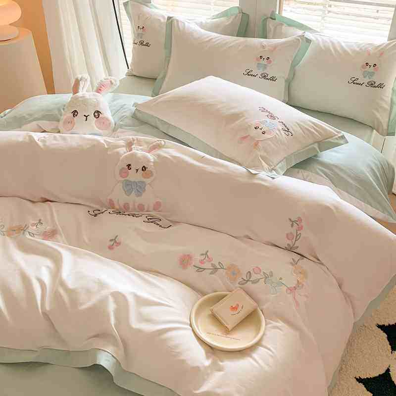 可爱少女心全棉四件套纯棉长绒棉卡通儿童高级感床上用品床单被套