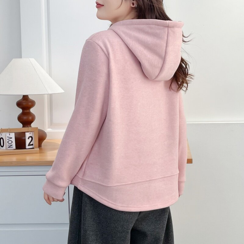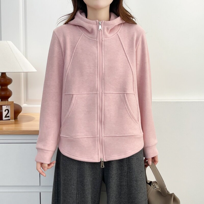 大码新款连帽双拉链卫衣女装加绒加厚短外套冬装卫衣开衫休闲上衣