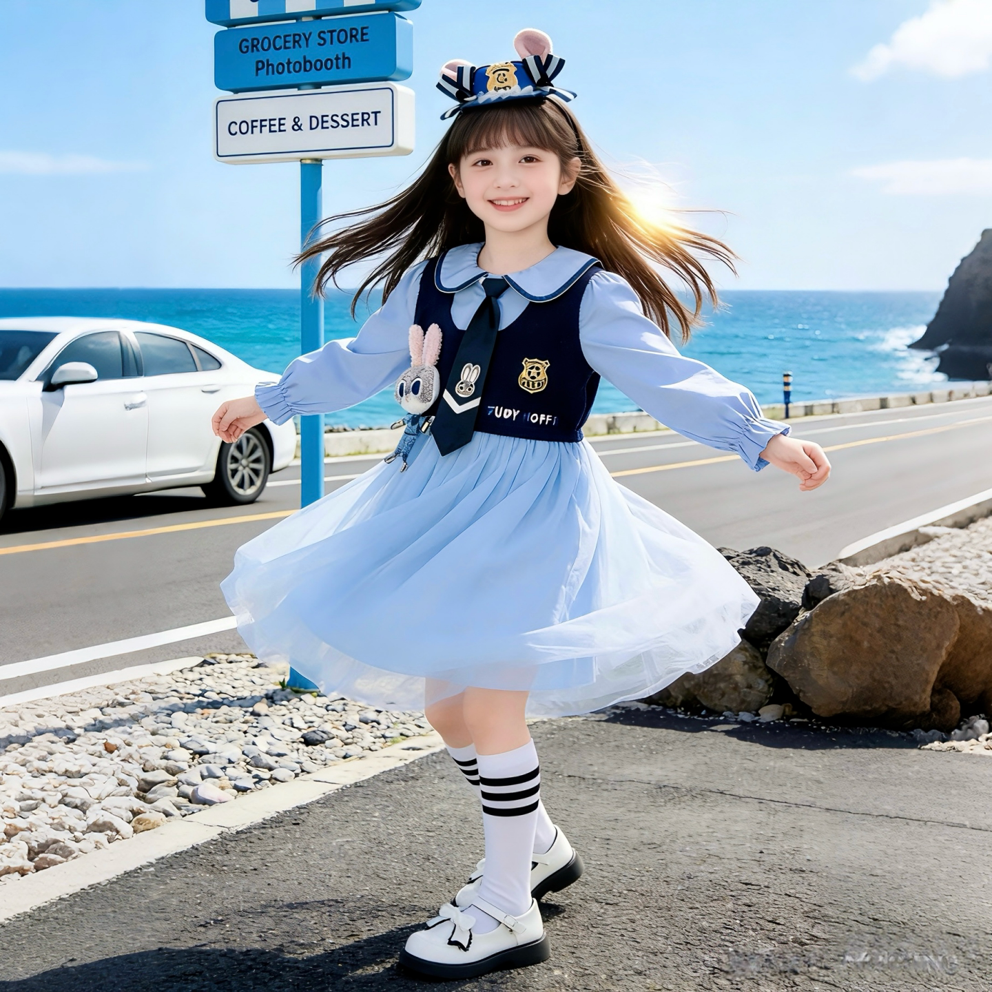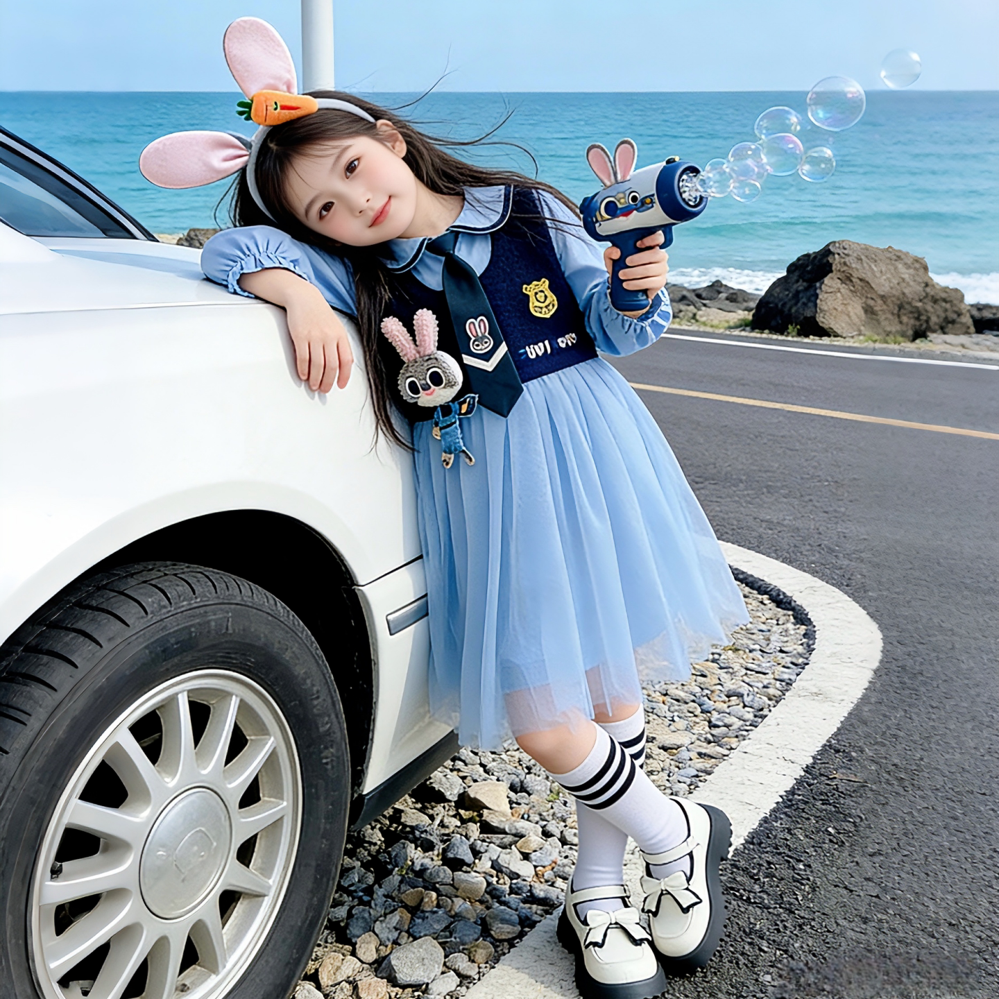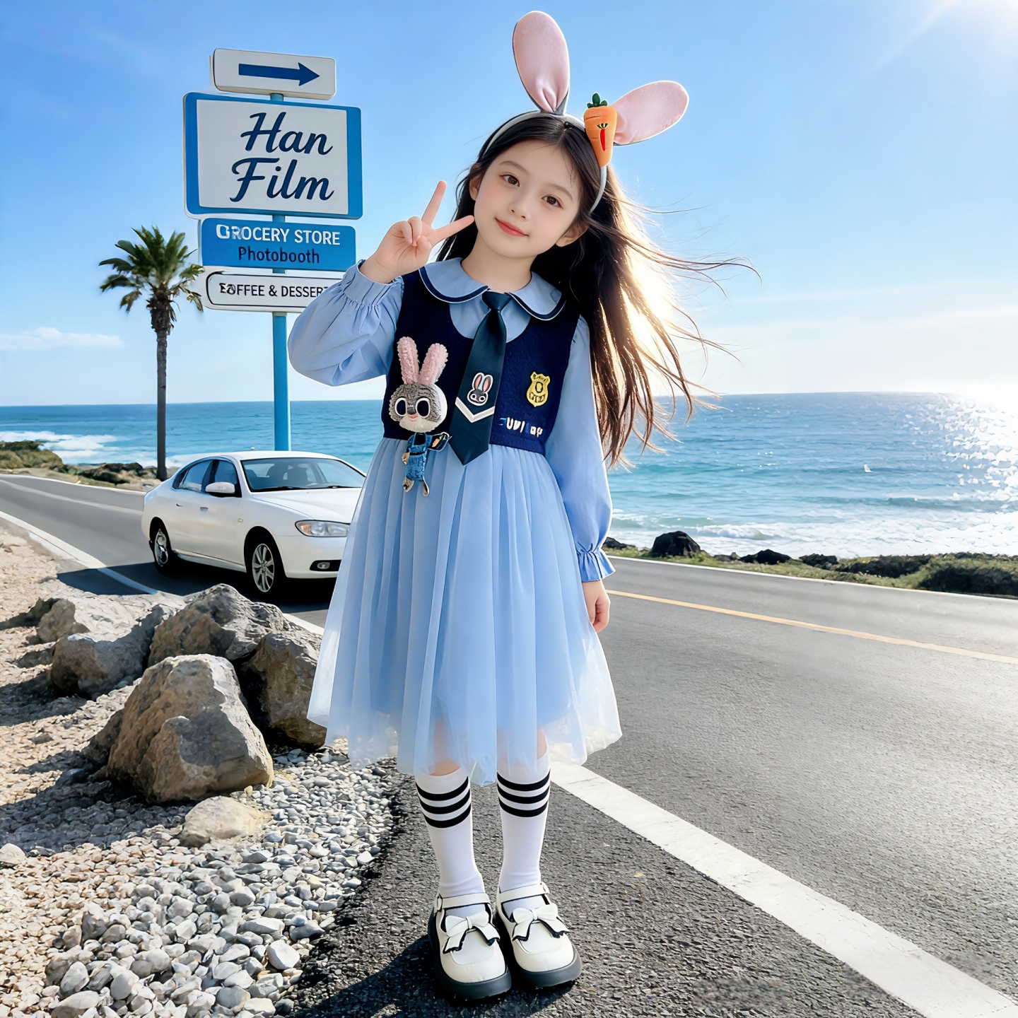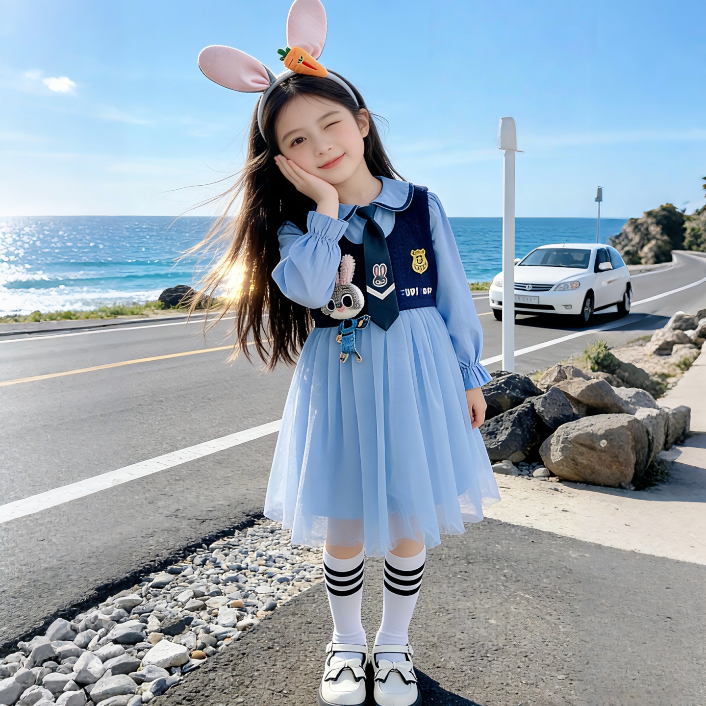 女童春秋款2026爆款洋气早春兔子朱迪服装儿童中大童公主风连衣裙