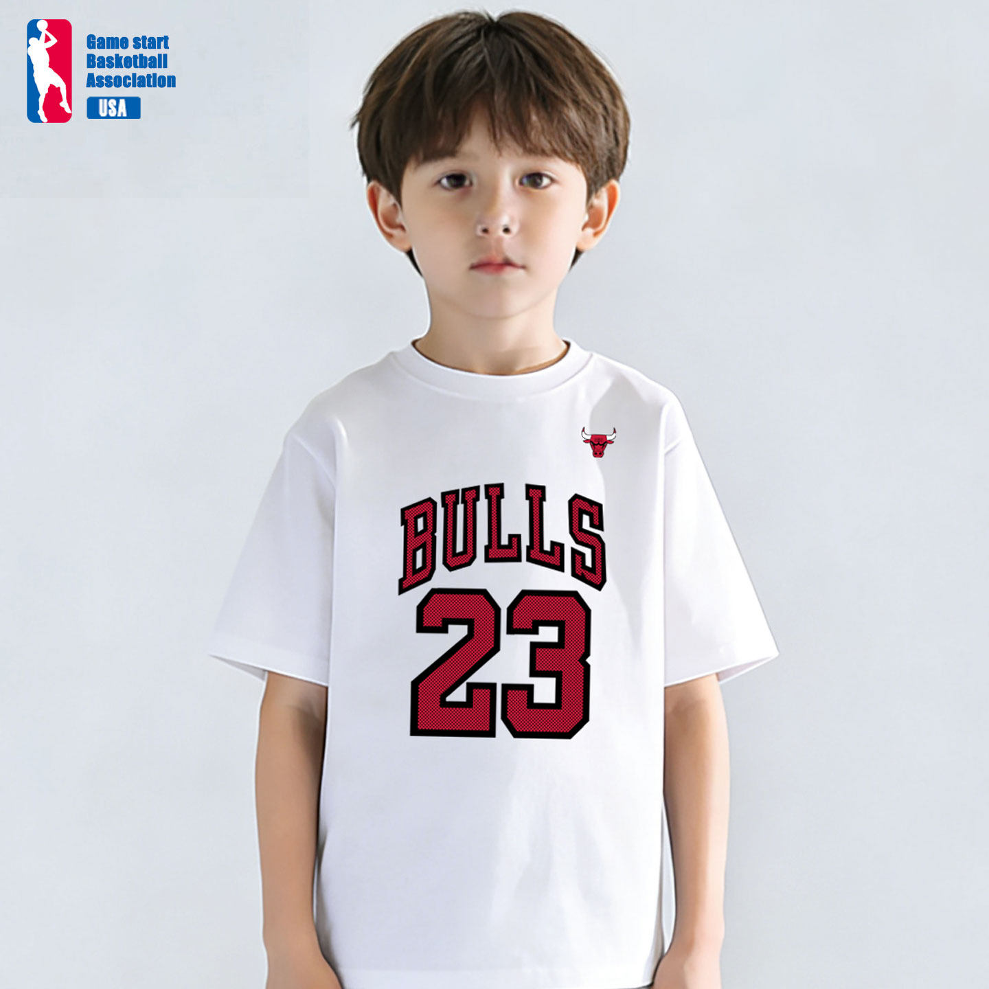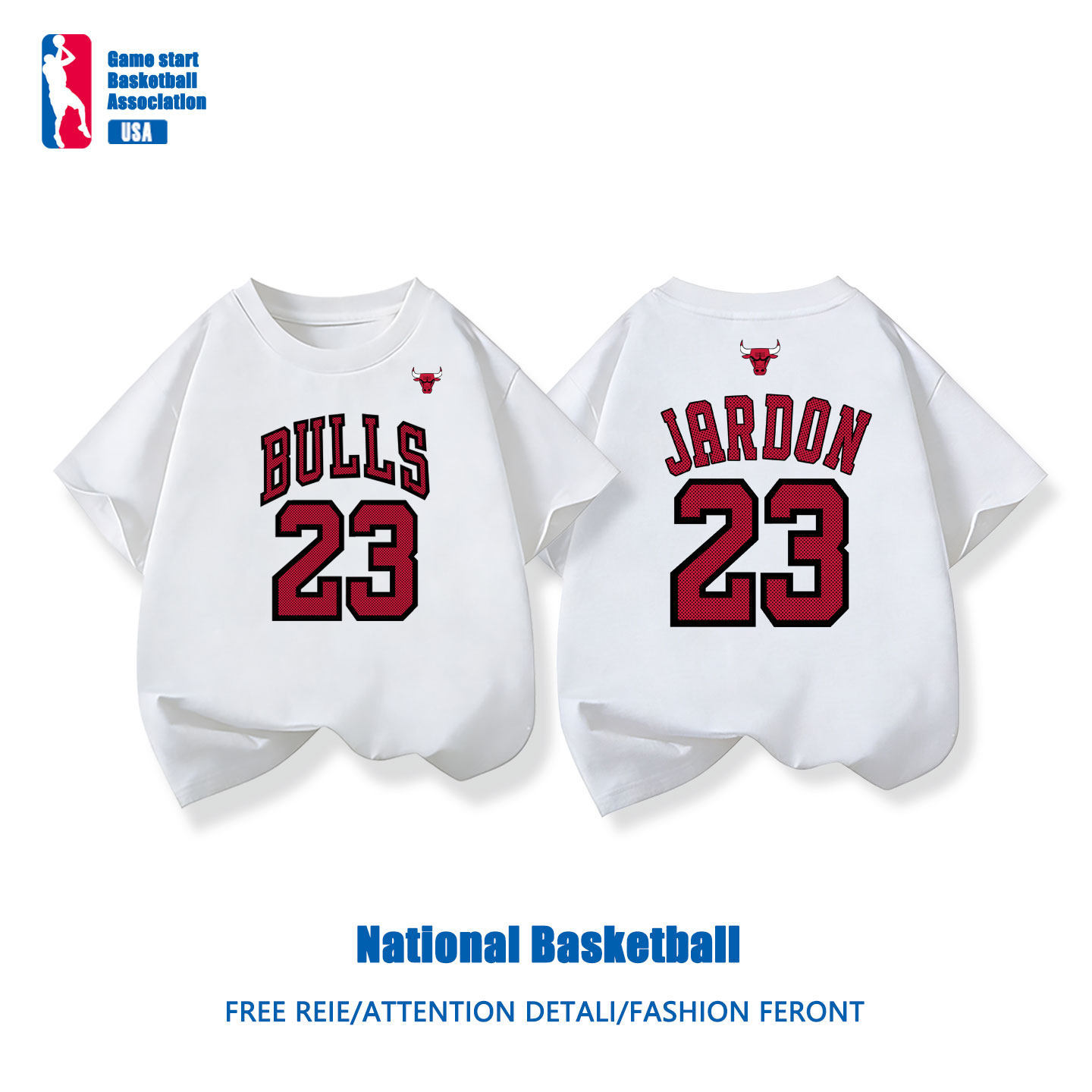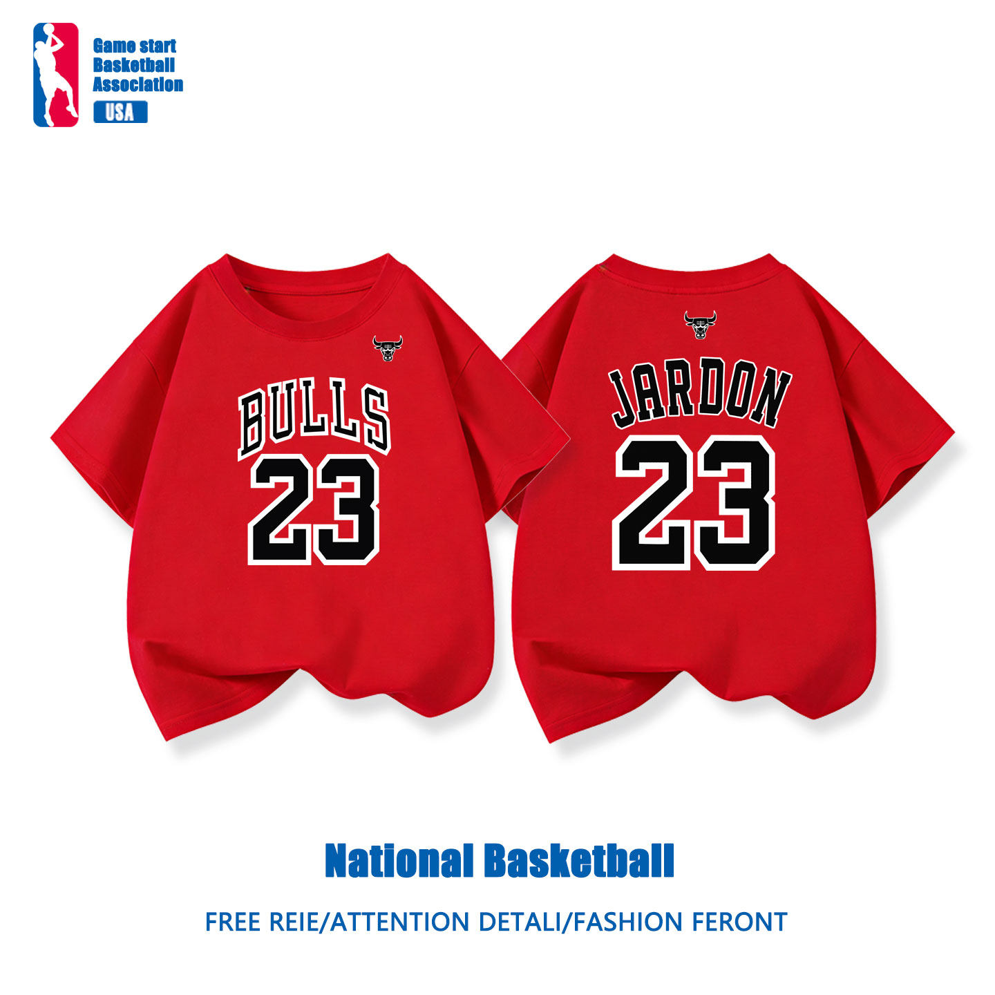 投篮服纯棉T恤男女童装公牛队训练球衣夏季短袖男休闲上衣亲子装