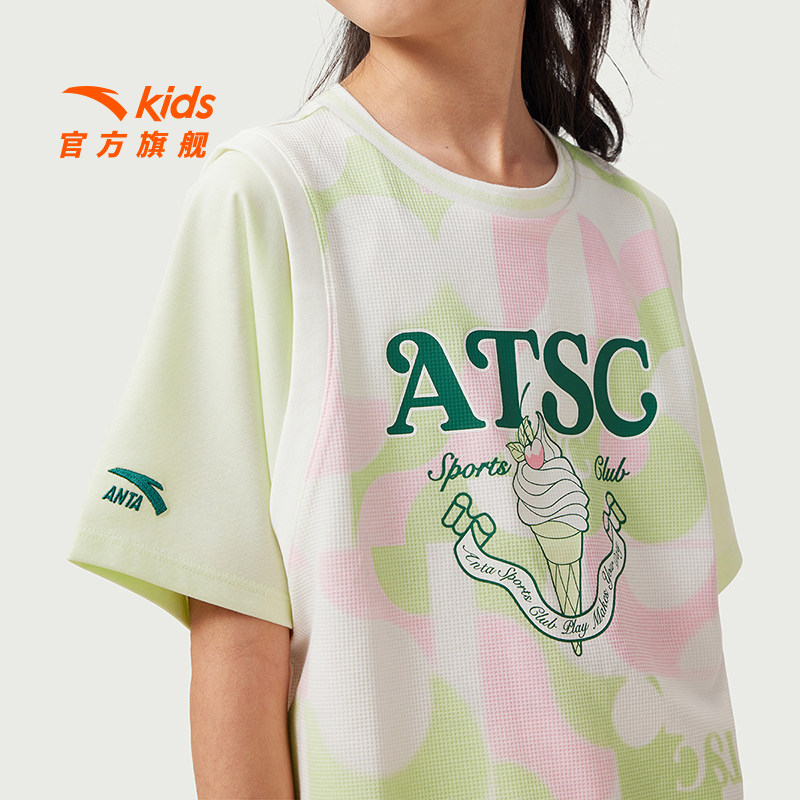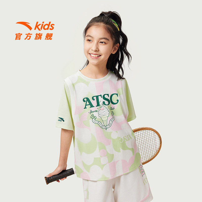 商场同款|安踏儿童短袖T恤女童篮球服夏季新款速干衣宽松运动上衣