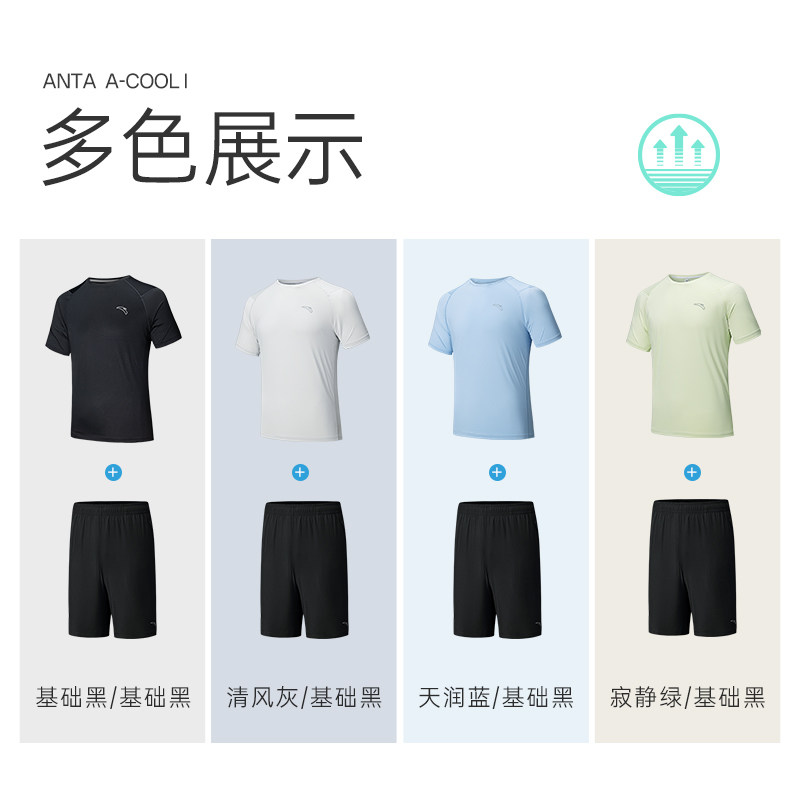 安踏速干套装丨跑步运动套装男士夏季健身训练短袖短裤透气两件套
