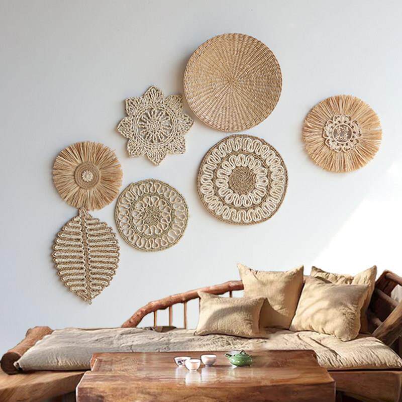 波西米亚手工草编织圆形藤编壁饰遮丑挂件民宿墙壁上墙面装饰挂饰