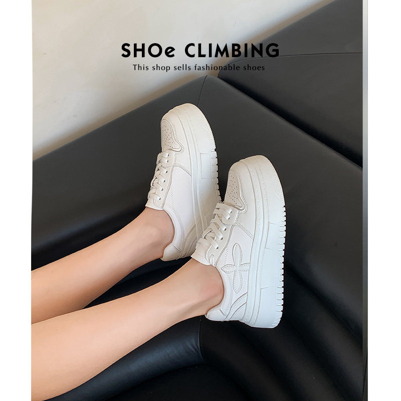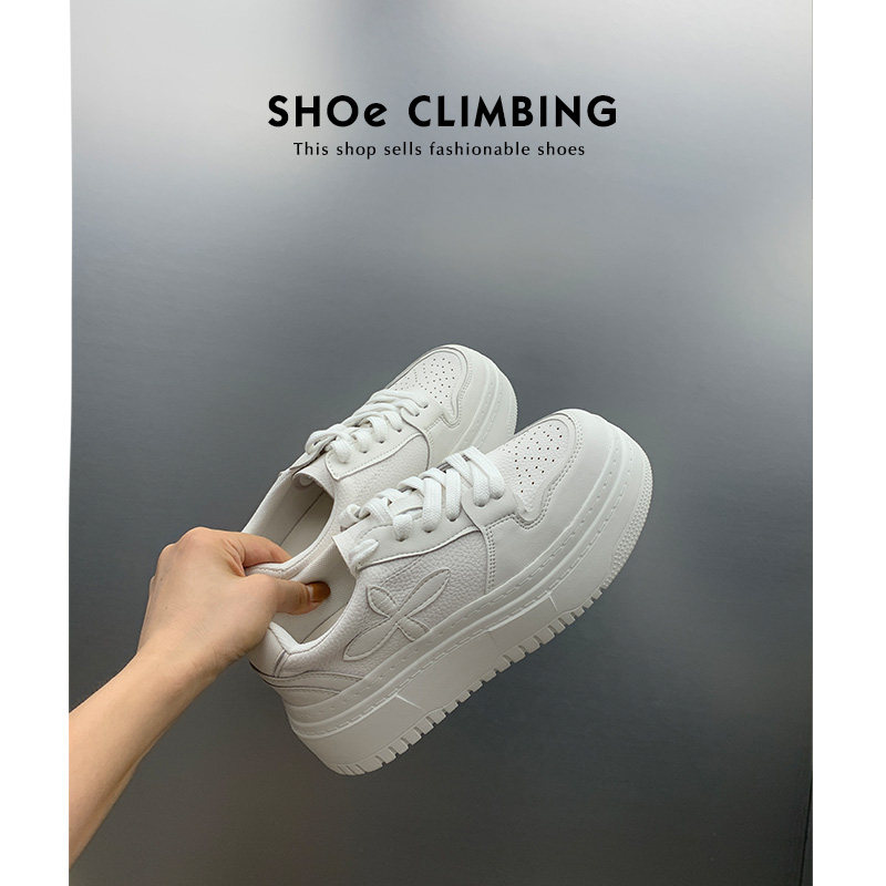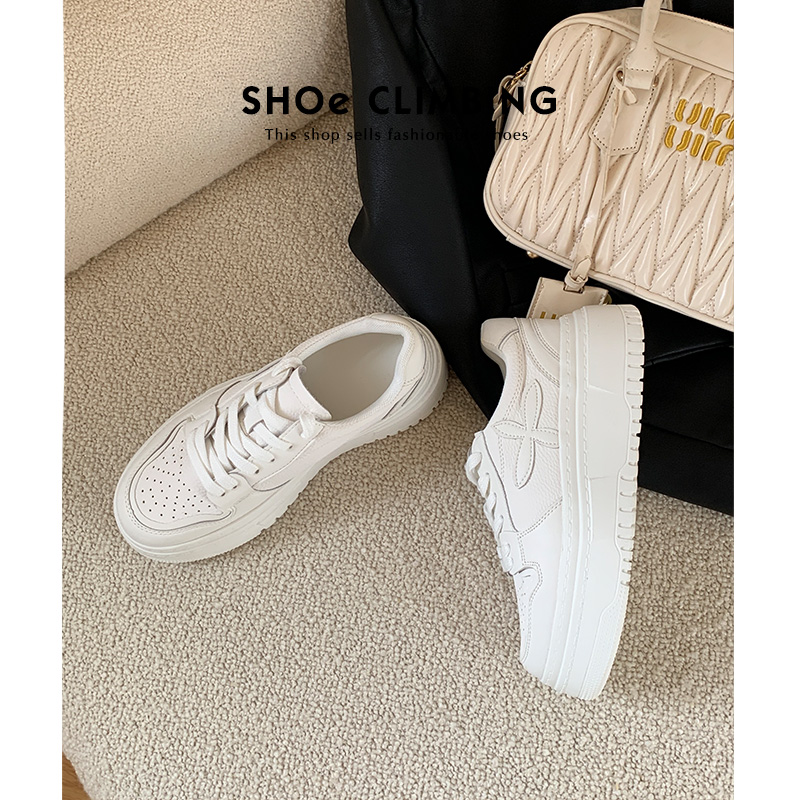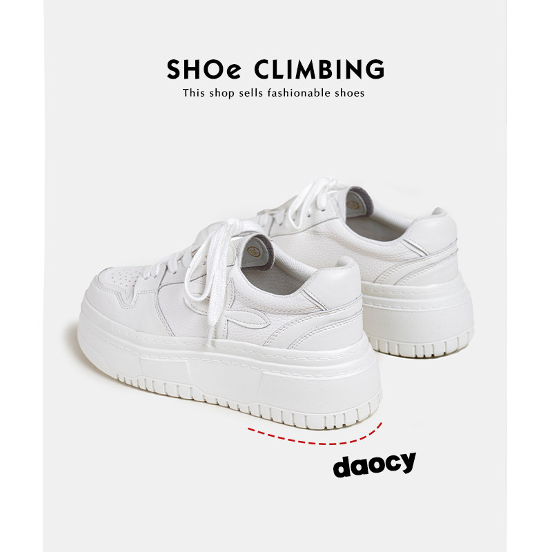 「鞋登」真皮内增高小白鞋女2026年新款系带松糕底休闲运动板鞋