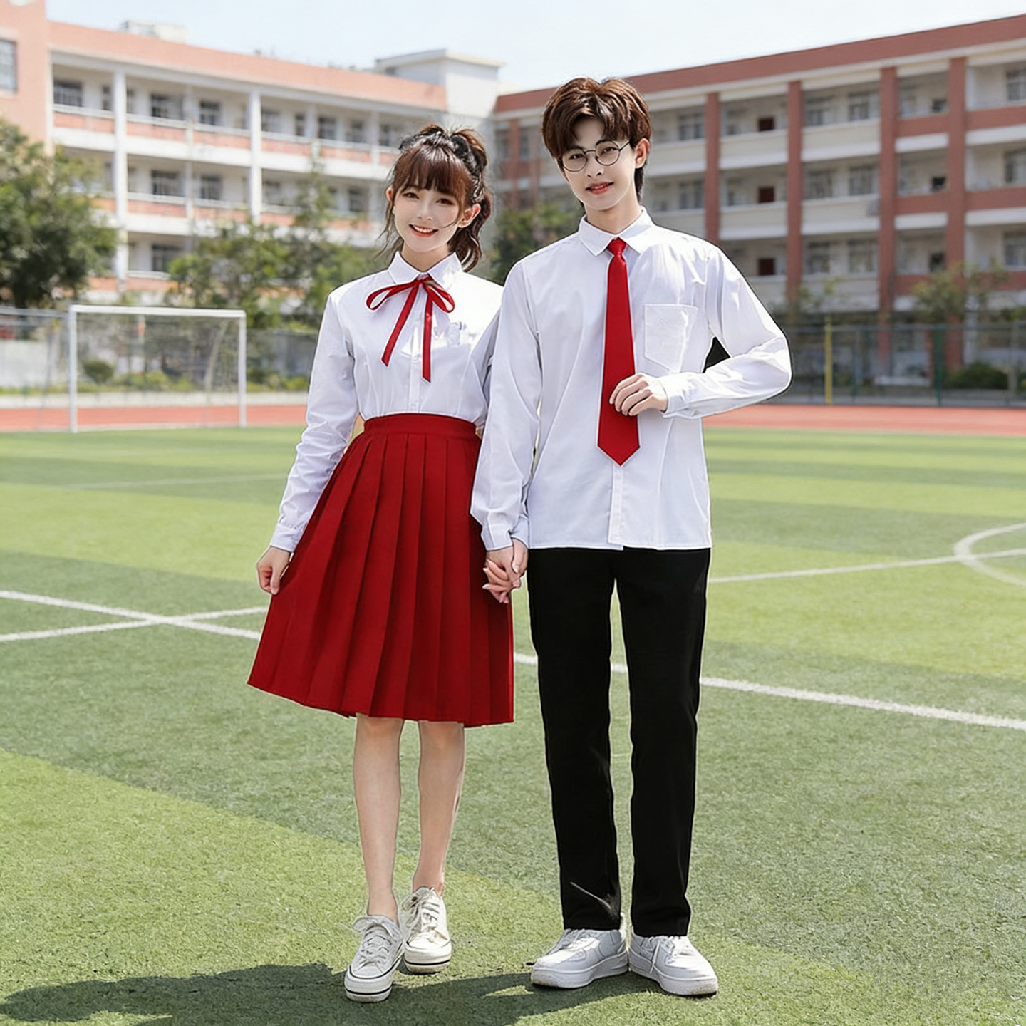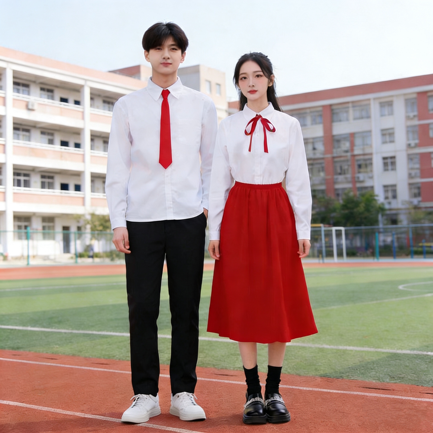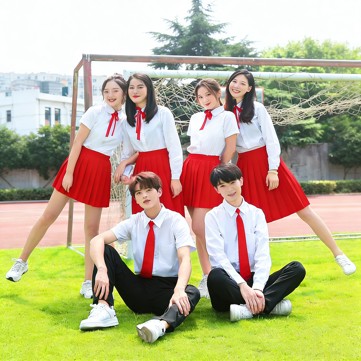 中学生合唱演出服白衬衣红色百褶裙朗诵比赛服装运动会班服学院风