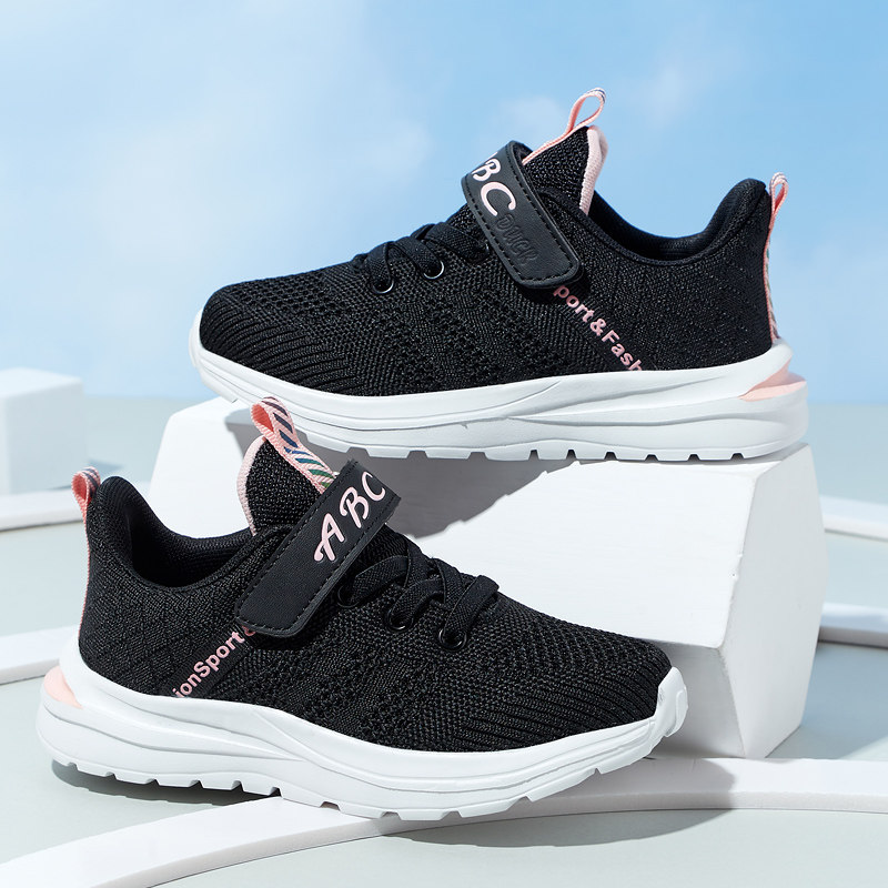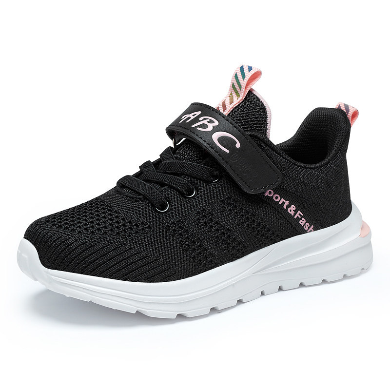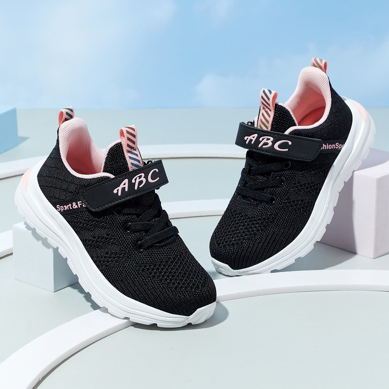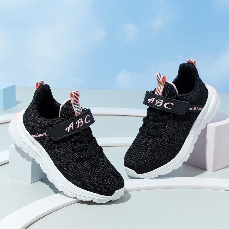 新款ABC女童鞋春款网面透气运动鞋轻便软底防滑跑步黑色儿童正品