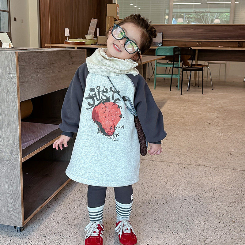 女童保暖卫衣裙2026新款童装不带帽中小童时尚休闲加绒加厚连衣裙