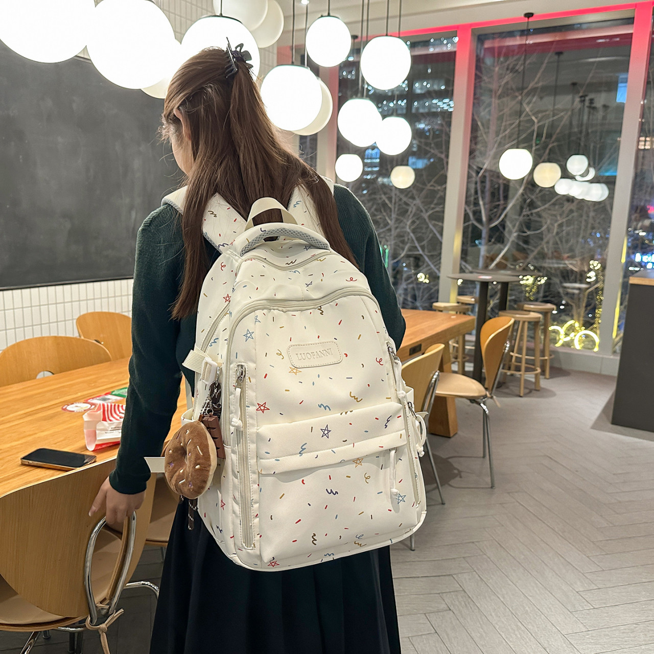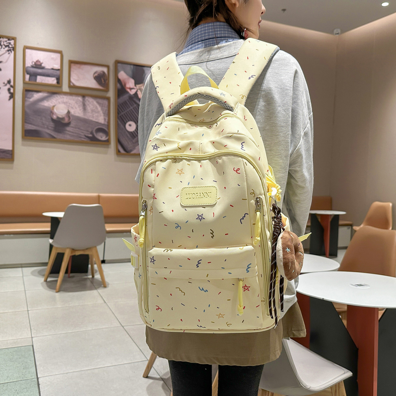 311线报网描述:蓝色星星涂鸦高颜值韩ins简约双肩包