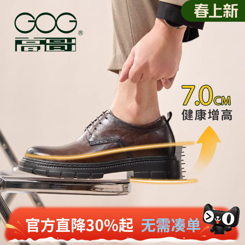高哥增高皮鞋男正装商务头层牛皮男鞋轻便厚底德比鞋隐形内增高鞋