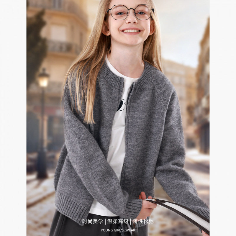 女童毛衣秋冬季新款儿童针织开衫大童休闲外套青少年上衣女孩童装