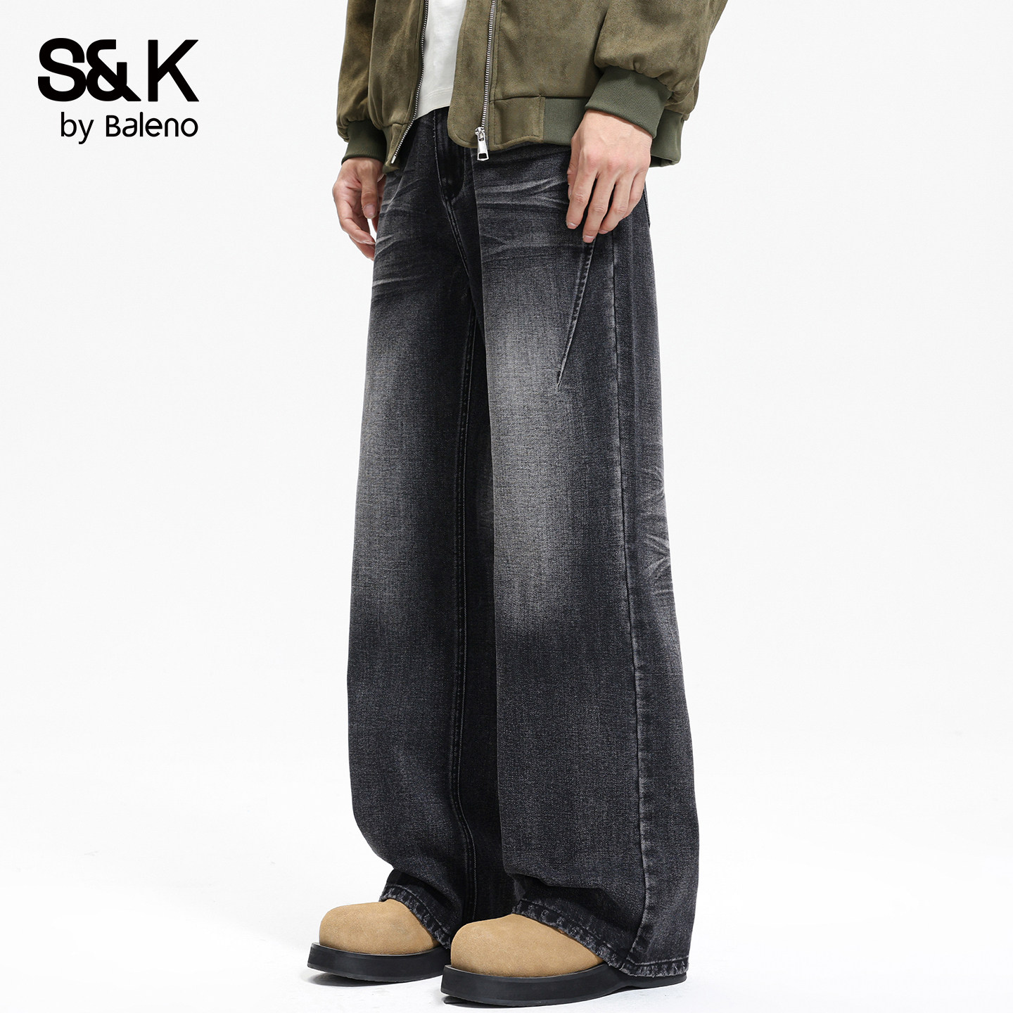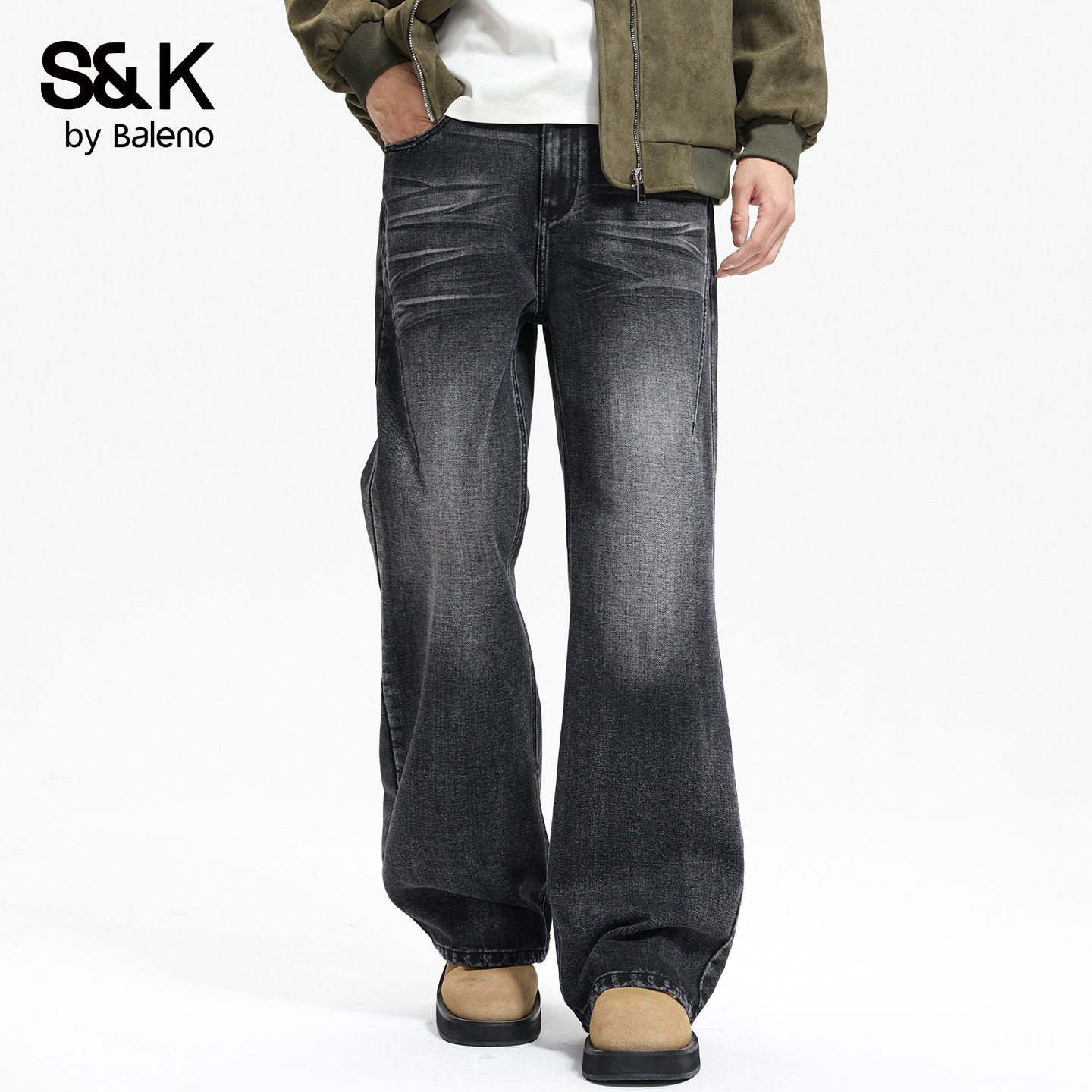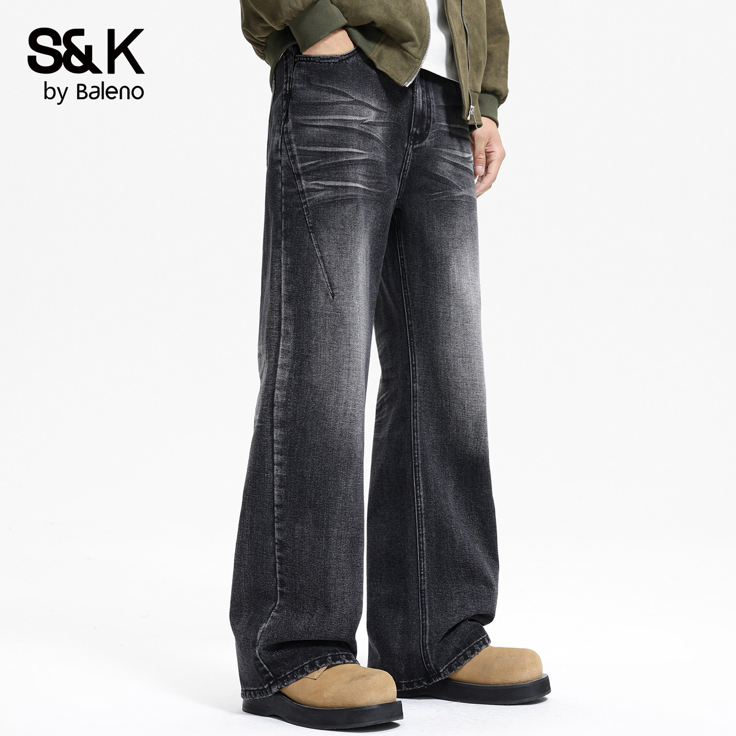 班尼路SK美式复古微喇牛仔裤男夏季2026新款宽松水洗阔腿长裤子YS
