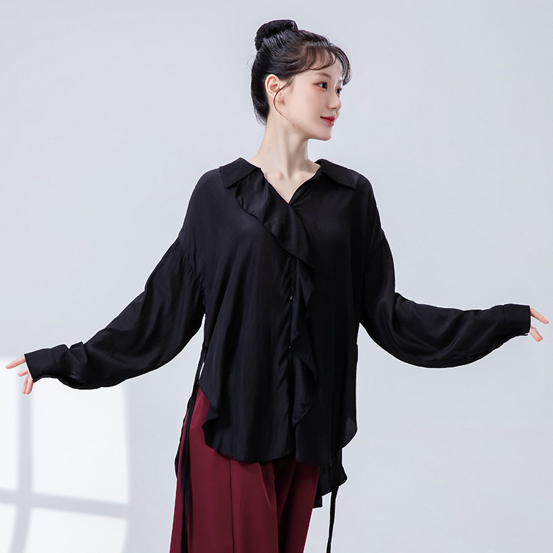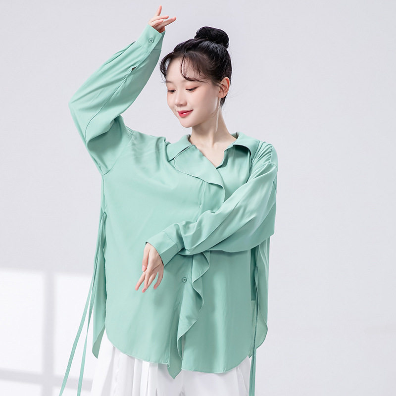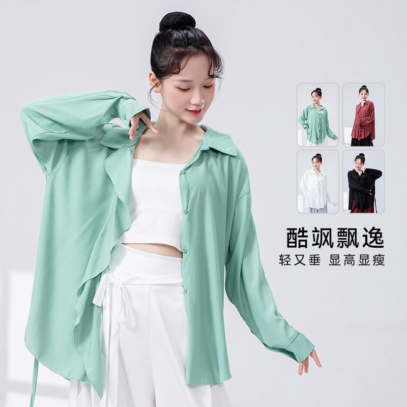 现代舞宽松长袖飘逸衬衣女春夏新款爵士舞中国舞成人舞蹈服装上衣