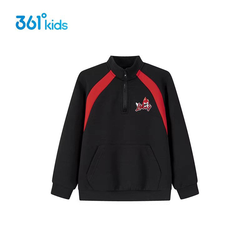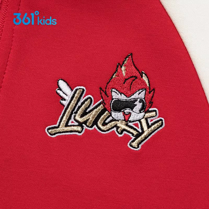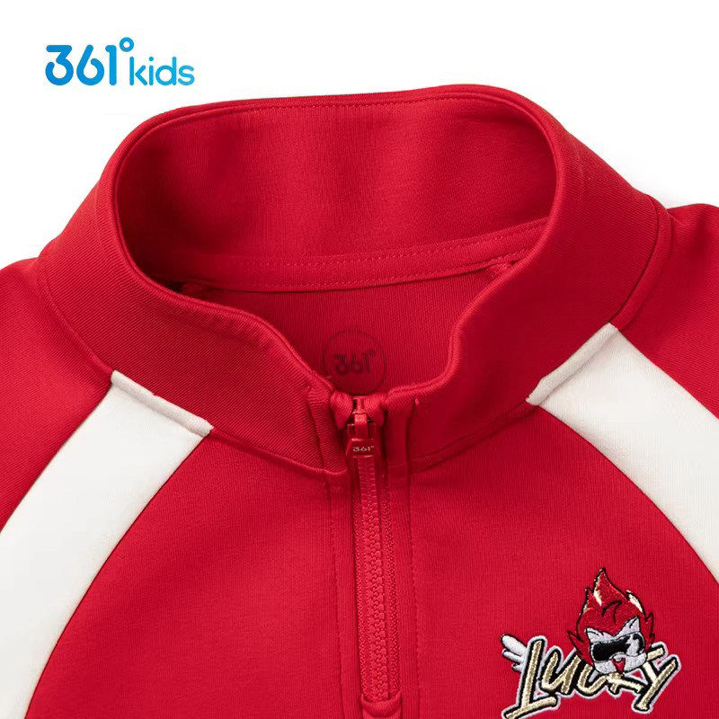 361°童装男童半拉链立领卫衣2026春款小童红色运动休闲潮流上衣