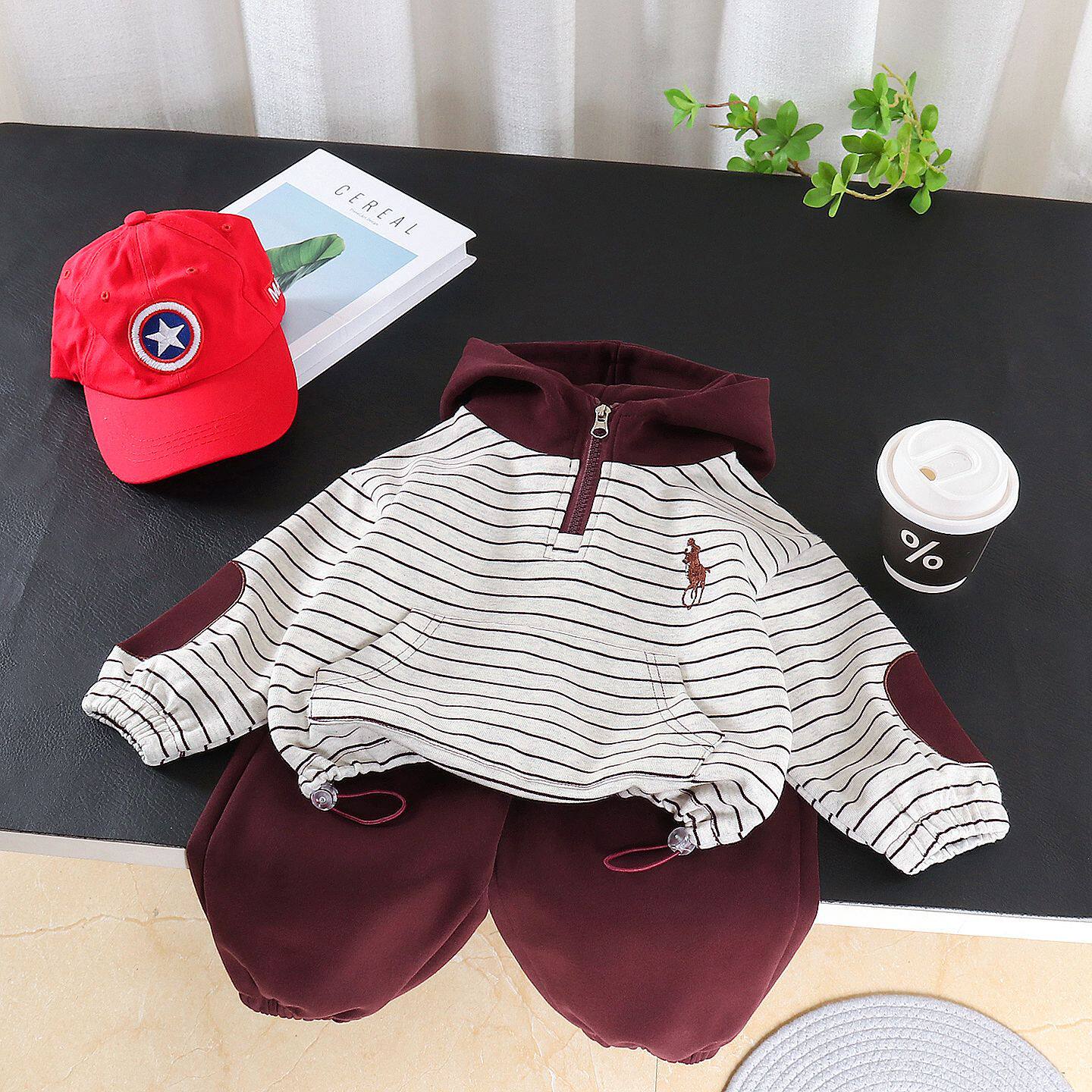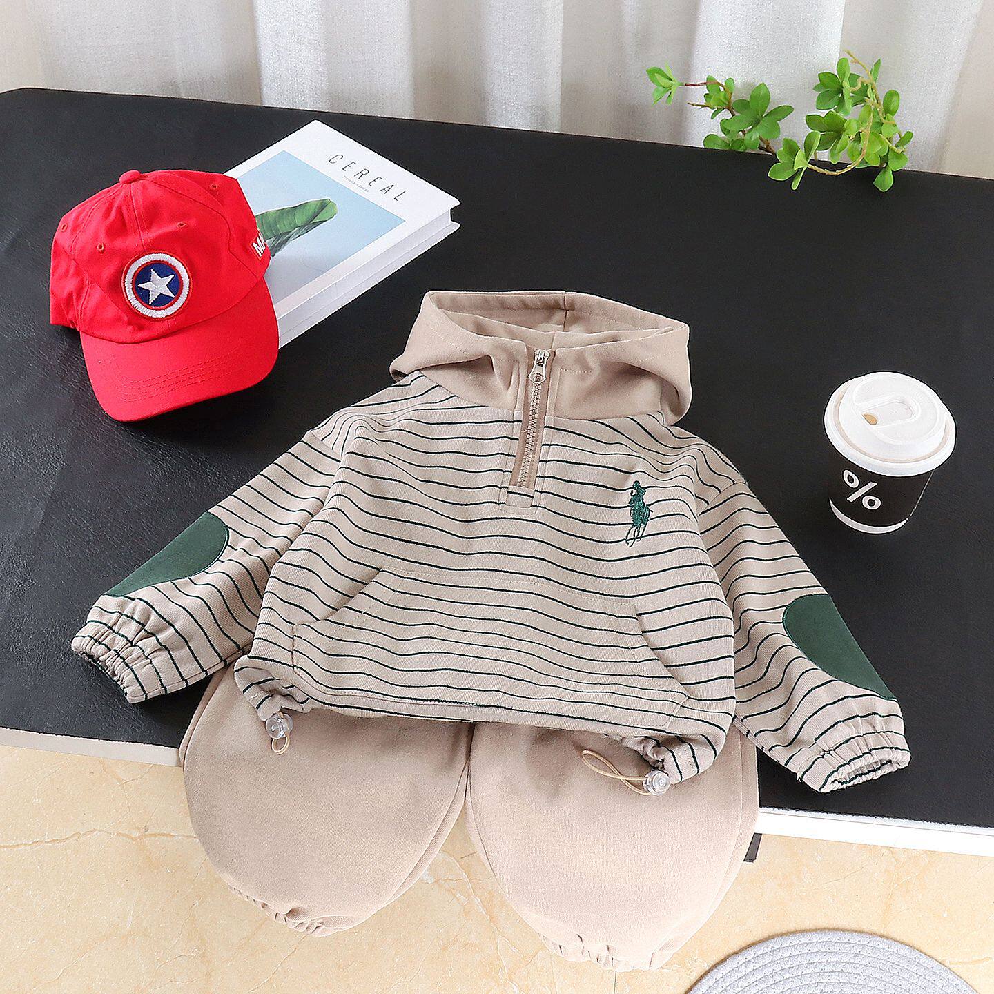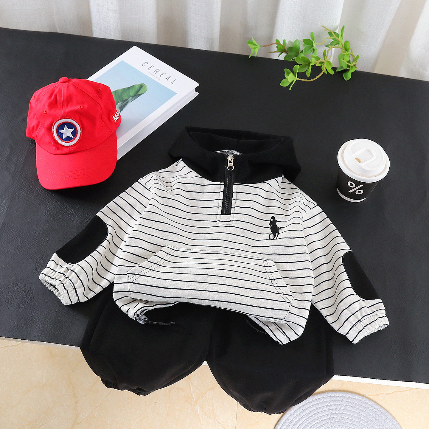 男童春装套装2026新款婴儿童春秋条纹带帽卫衣两件套男宝宝帅气潮