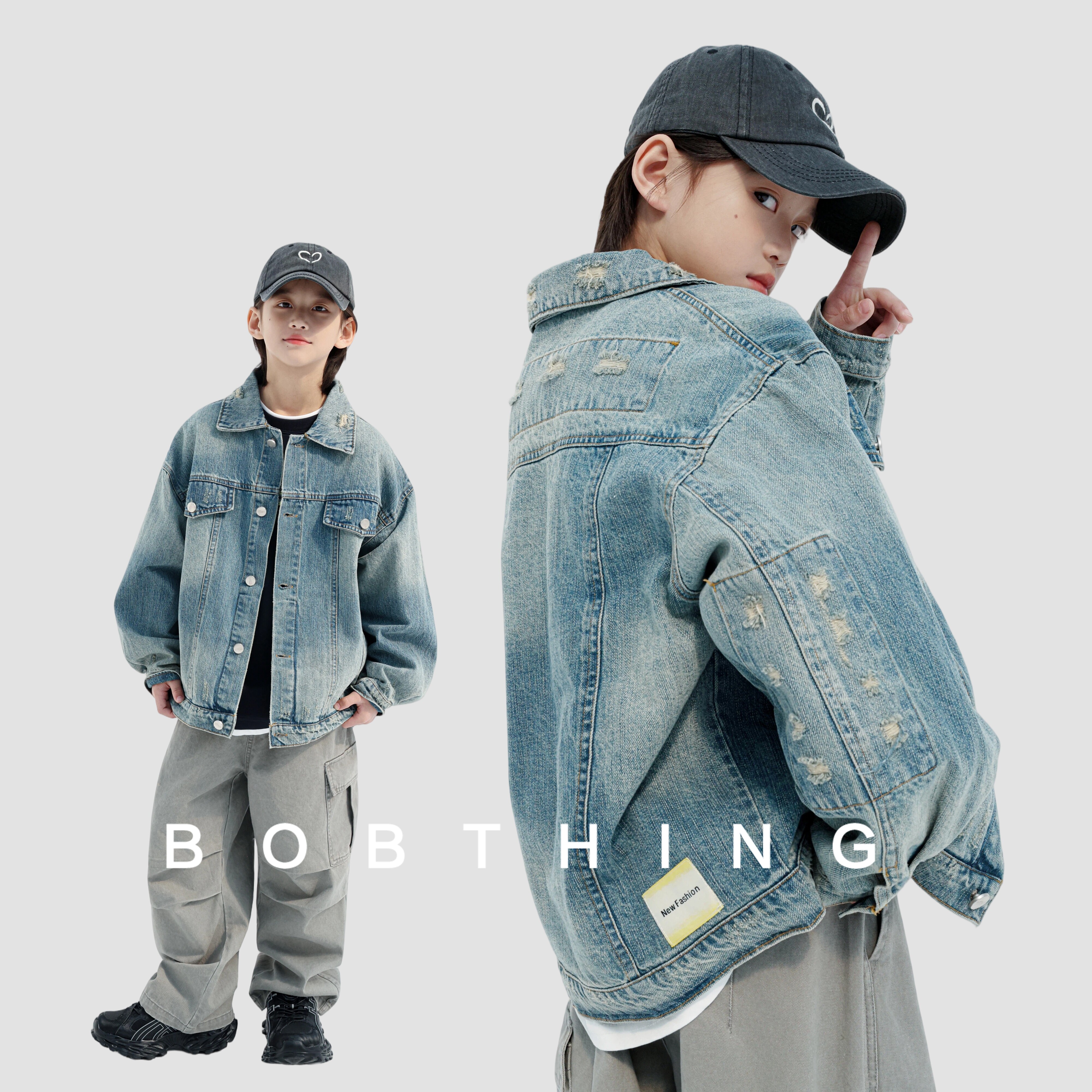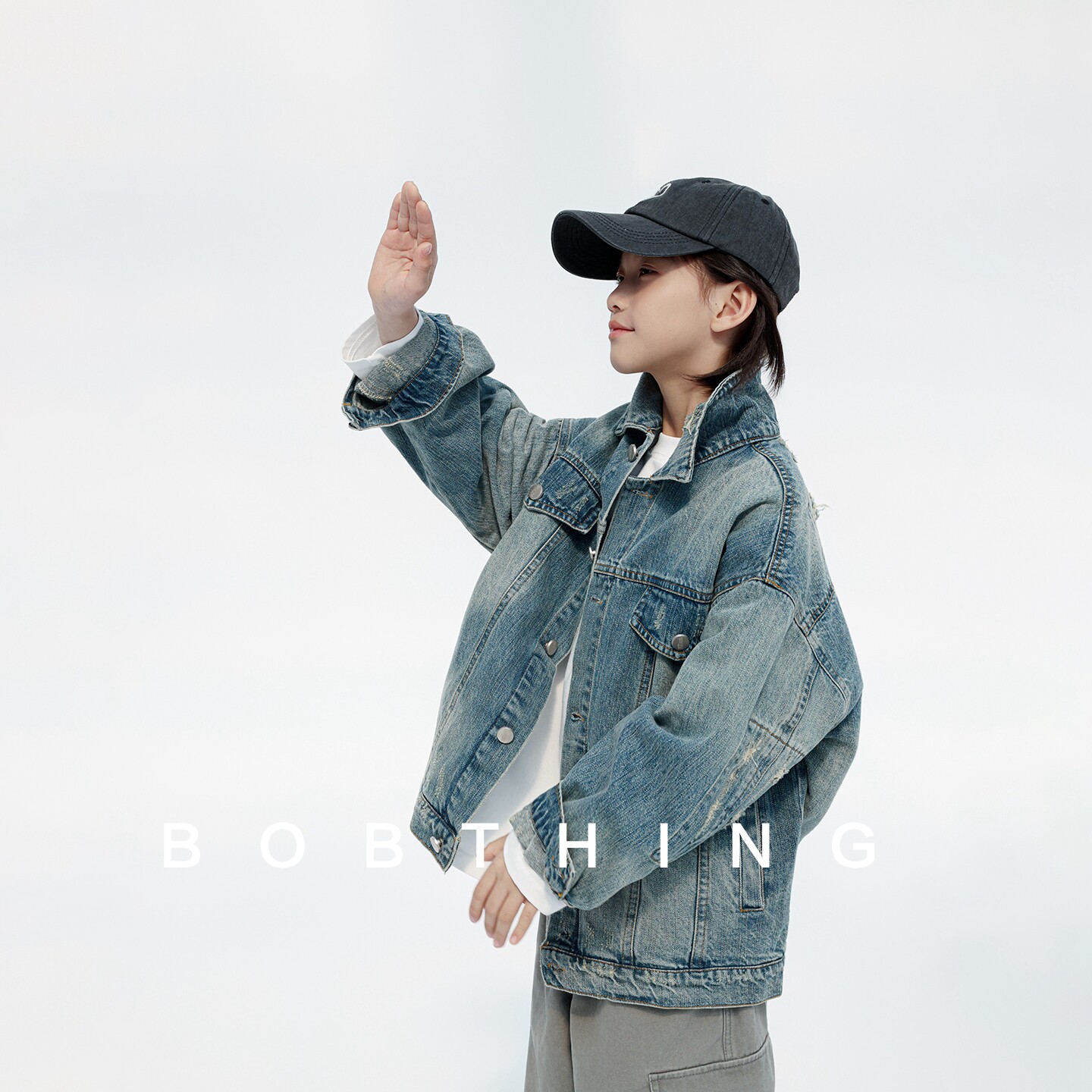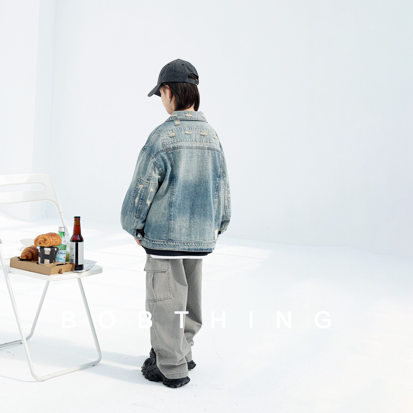 男童春装经典设计款牛仔外套2026新款儿童宽松夹克休闲翻领开衫潮
