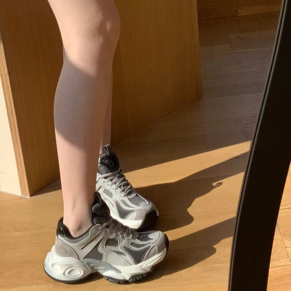 16小个子增高厚底老爹鞋女2026春季新款轻便擦色百搭休闲运动鞋潮