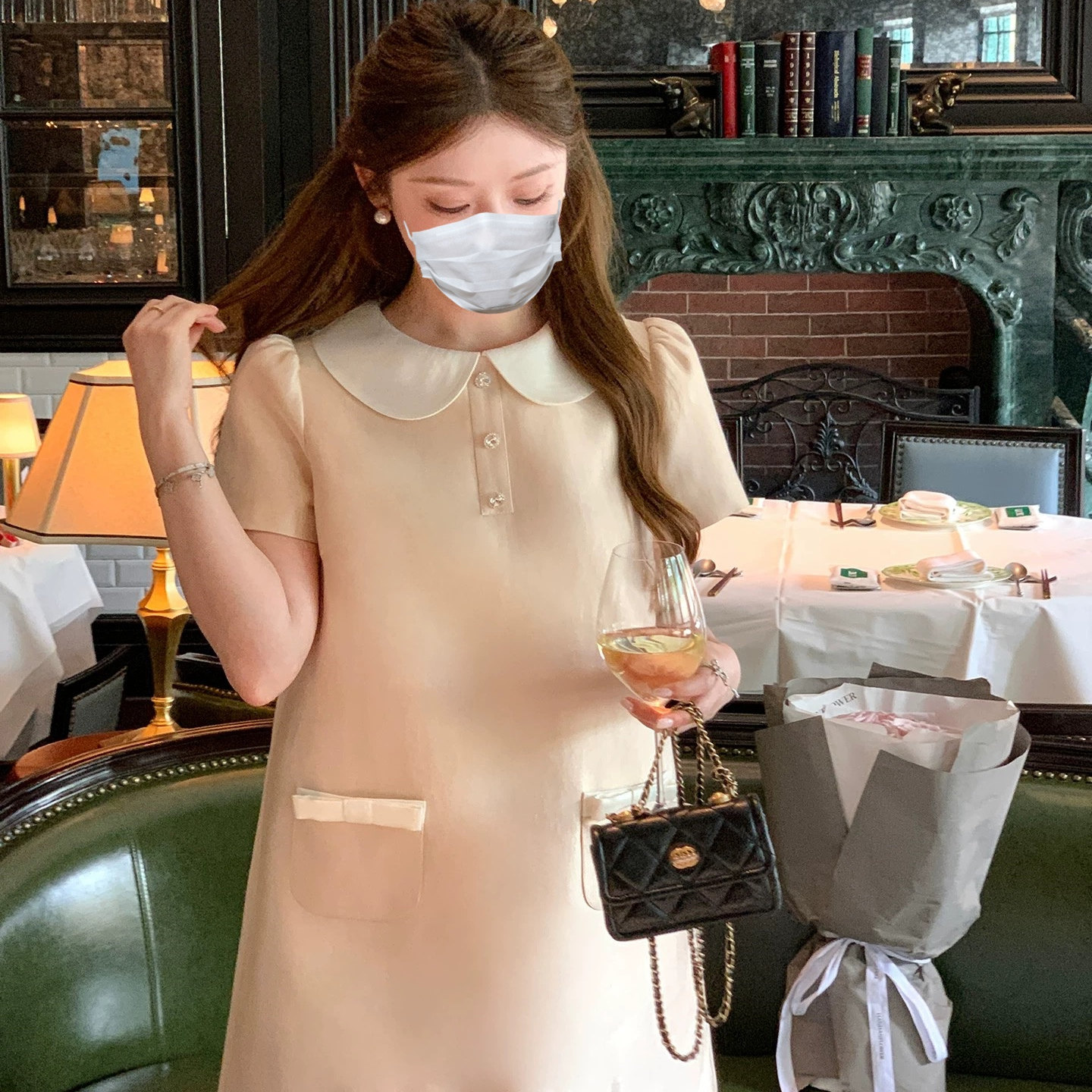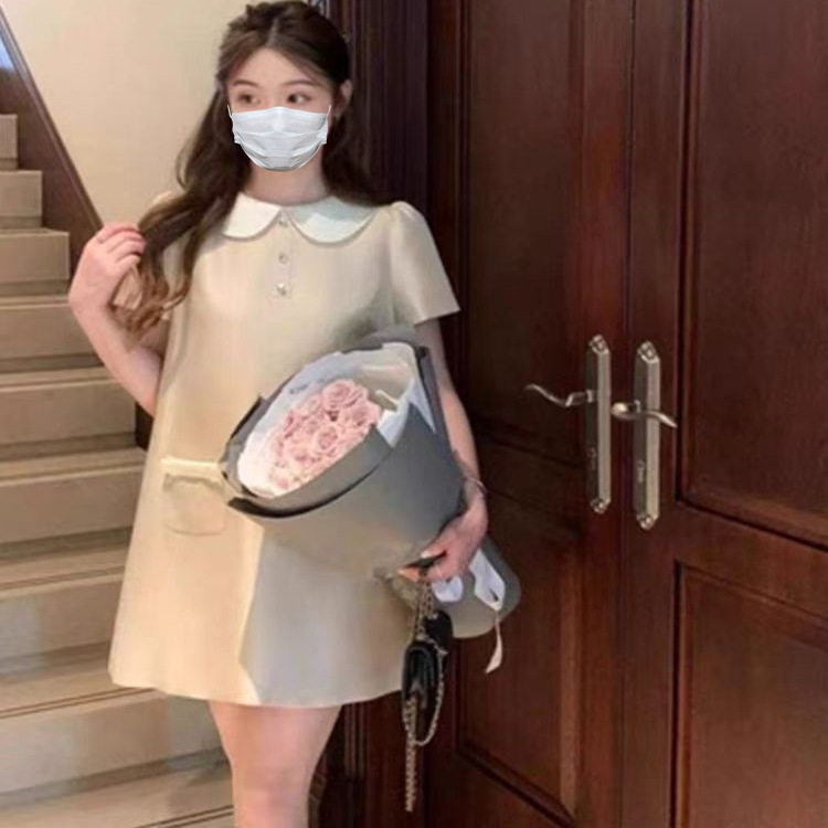 法式千金风娃娃领短袖连衣裙夏季新款高级感小个子宽松显瘦短裙子