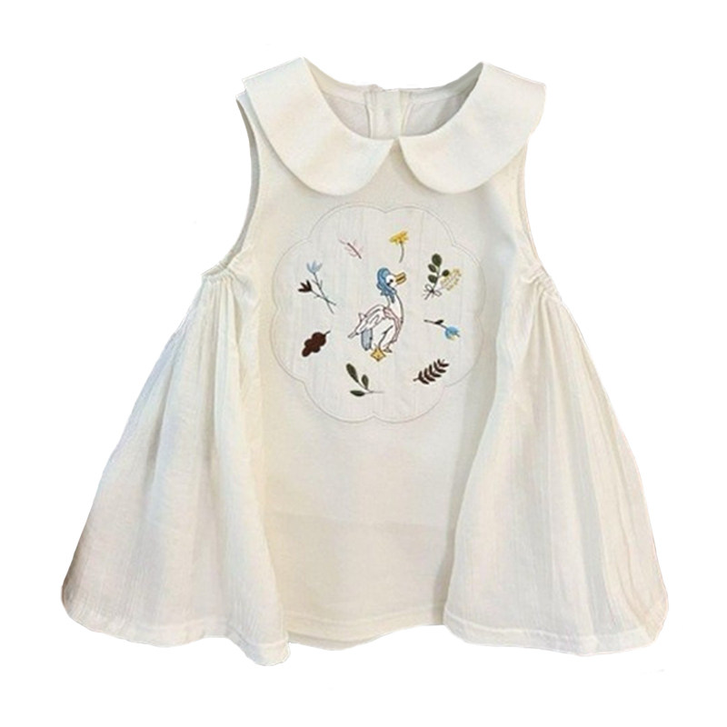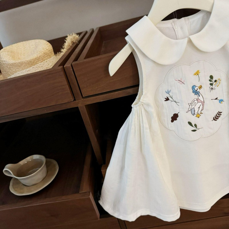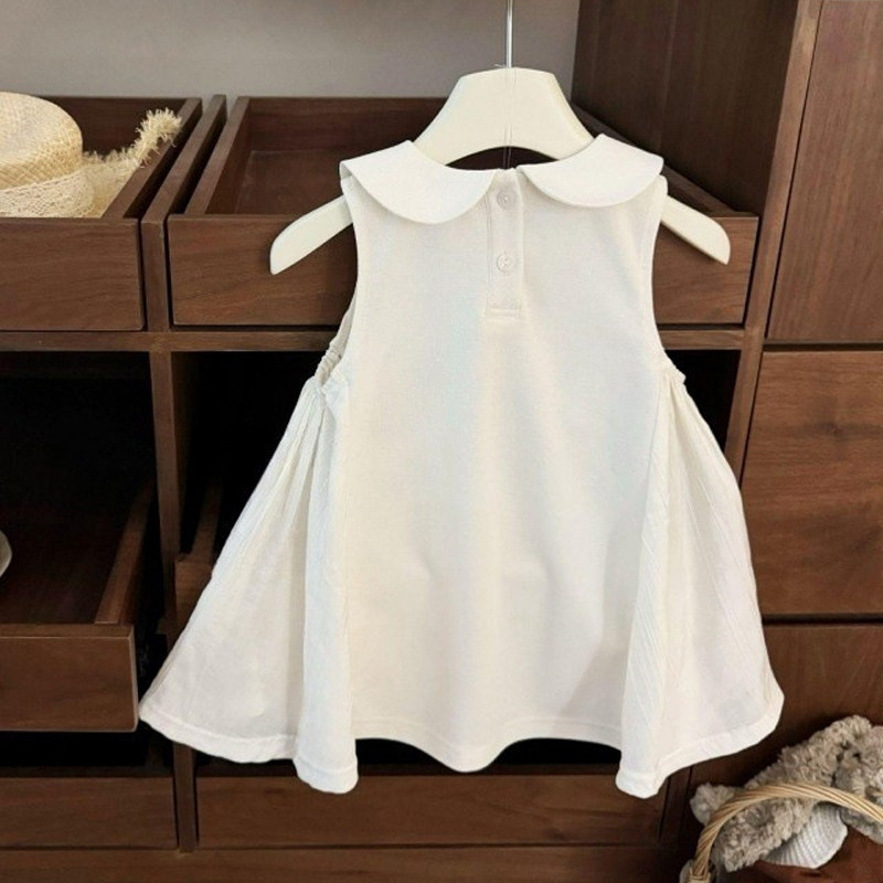 0-7岁女童爱丽丝法式连衣裙夏季新款女宝宝绣花贴布无袖翻领裙子