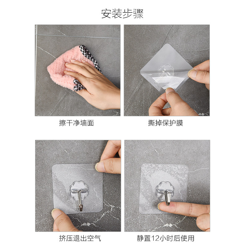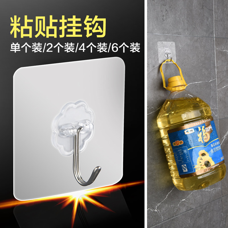 粘钩无痕透明强力挂钩免打孔承重粘胶瓷砖墙面墙壁挂钩强力不掉落