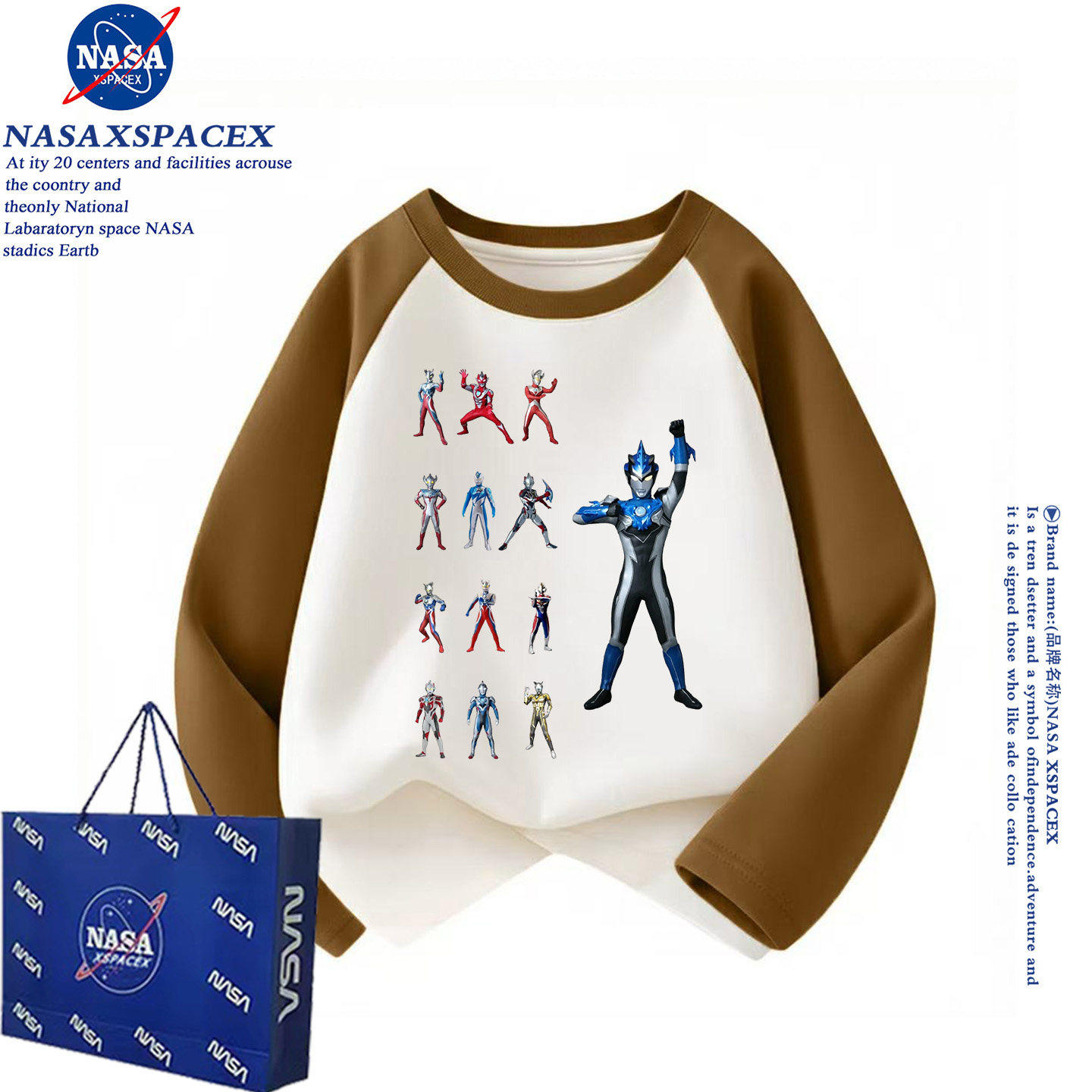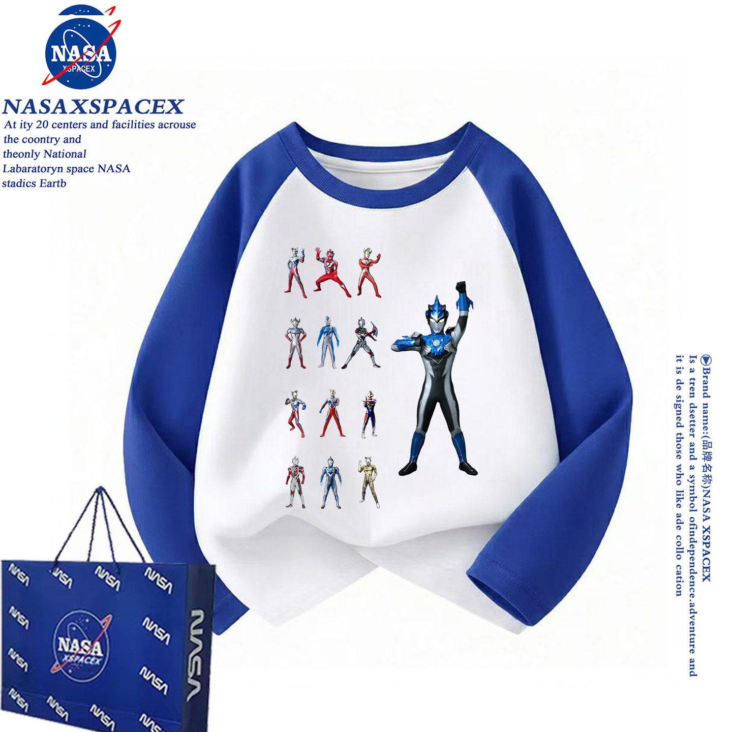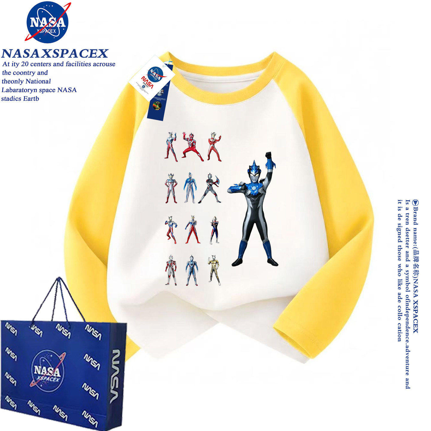 NASA联名春秋长袖T恤男童奥特曼拼色痞帅风纯棉打底洋气上衣潮牌