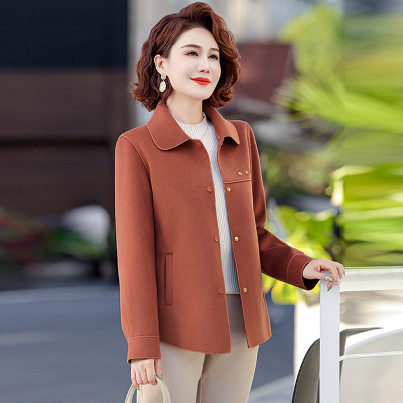 妈妈春装双面呢短外套女2026新款中老年人春秋洋气毛呢上衣显瘦款
