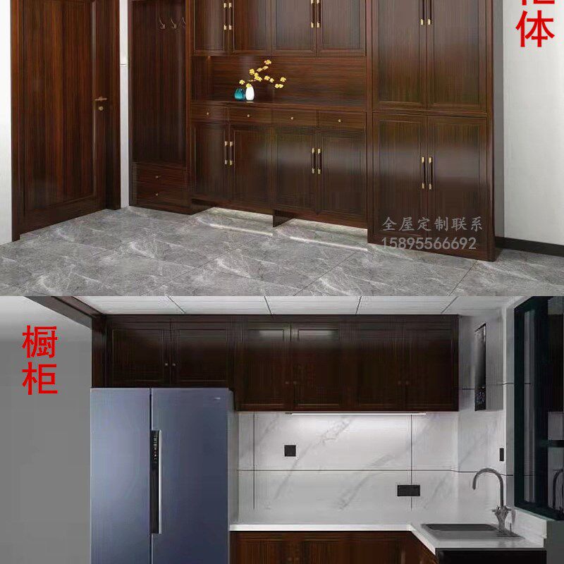 新中式全屋定制衣柜家具整体衣帽间橱柜实木护墙板榻榻米床整别墅