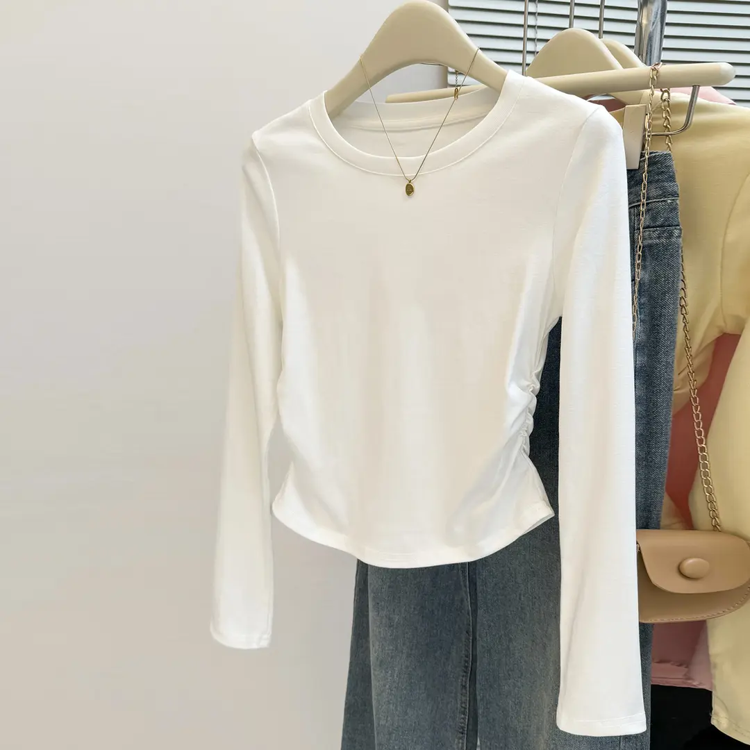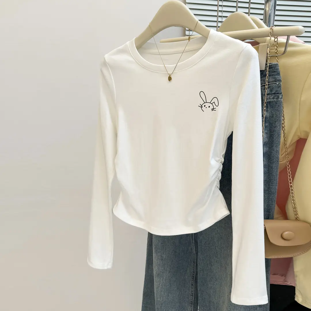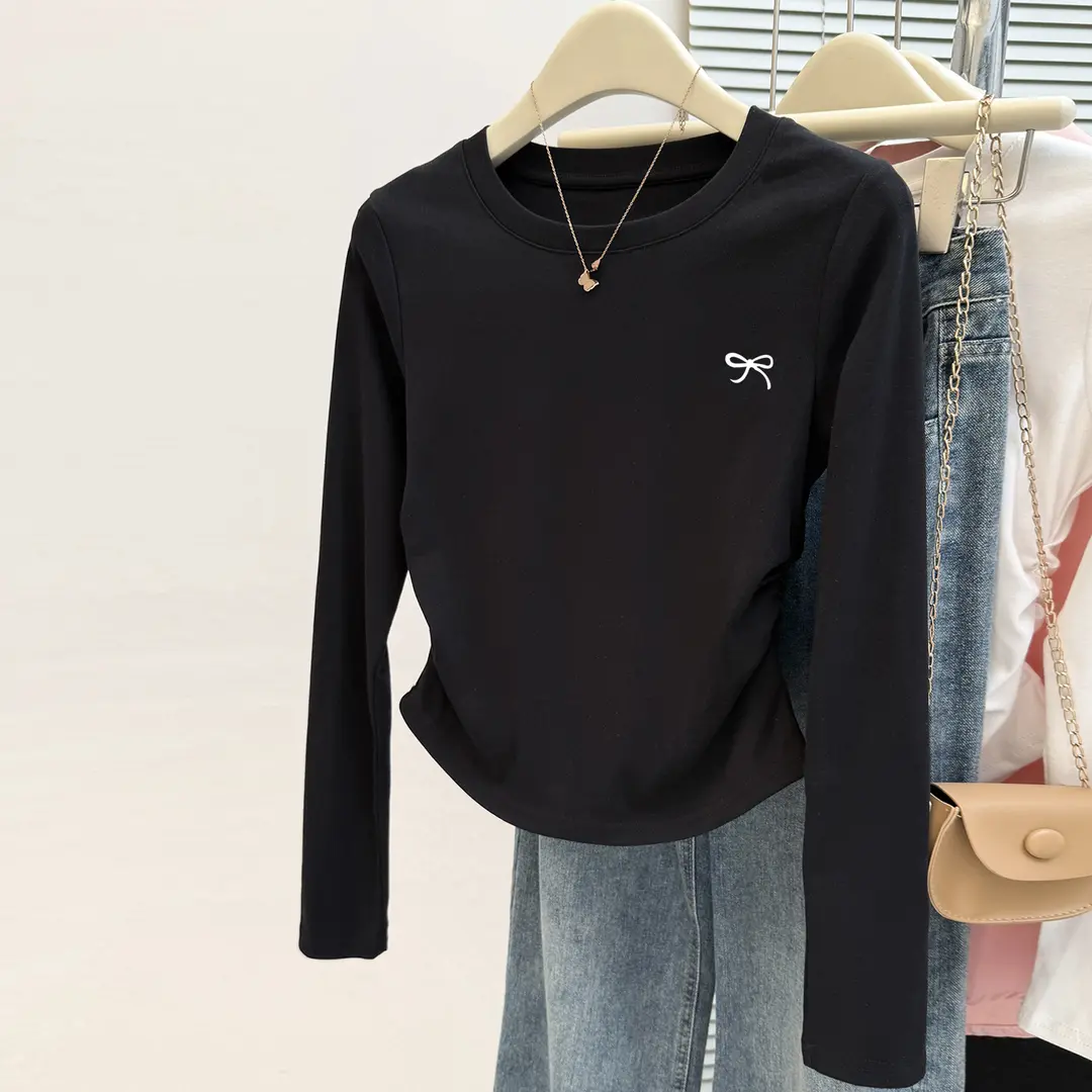 纯棉女童长袖t恤女秋季2025新款洋气短款中大童打底衫修身上衣