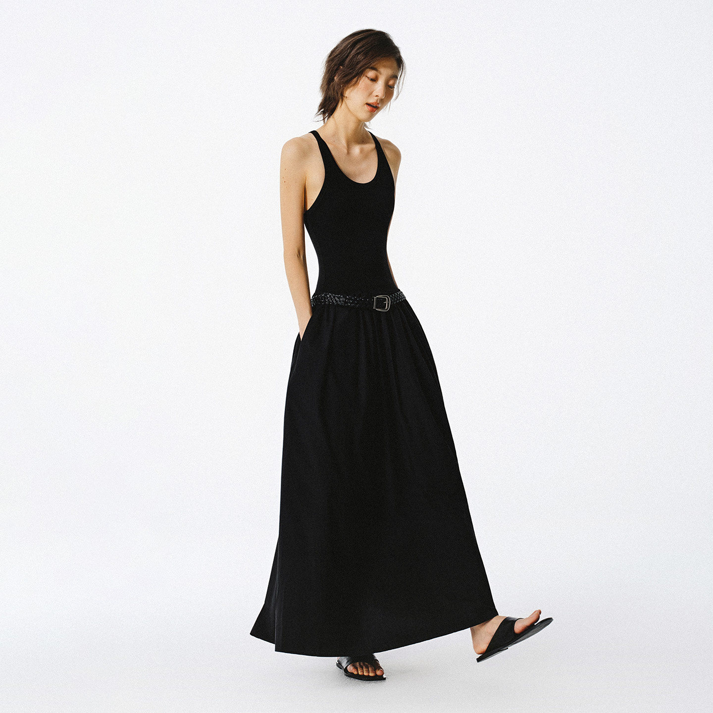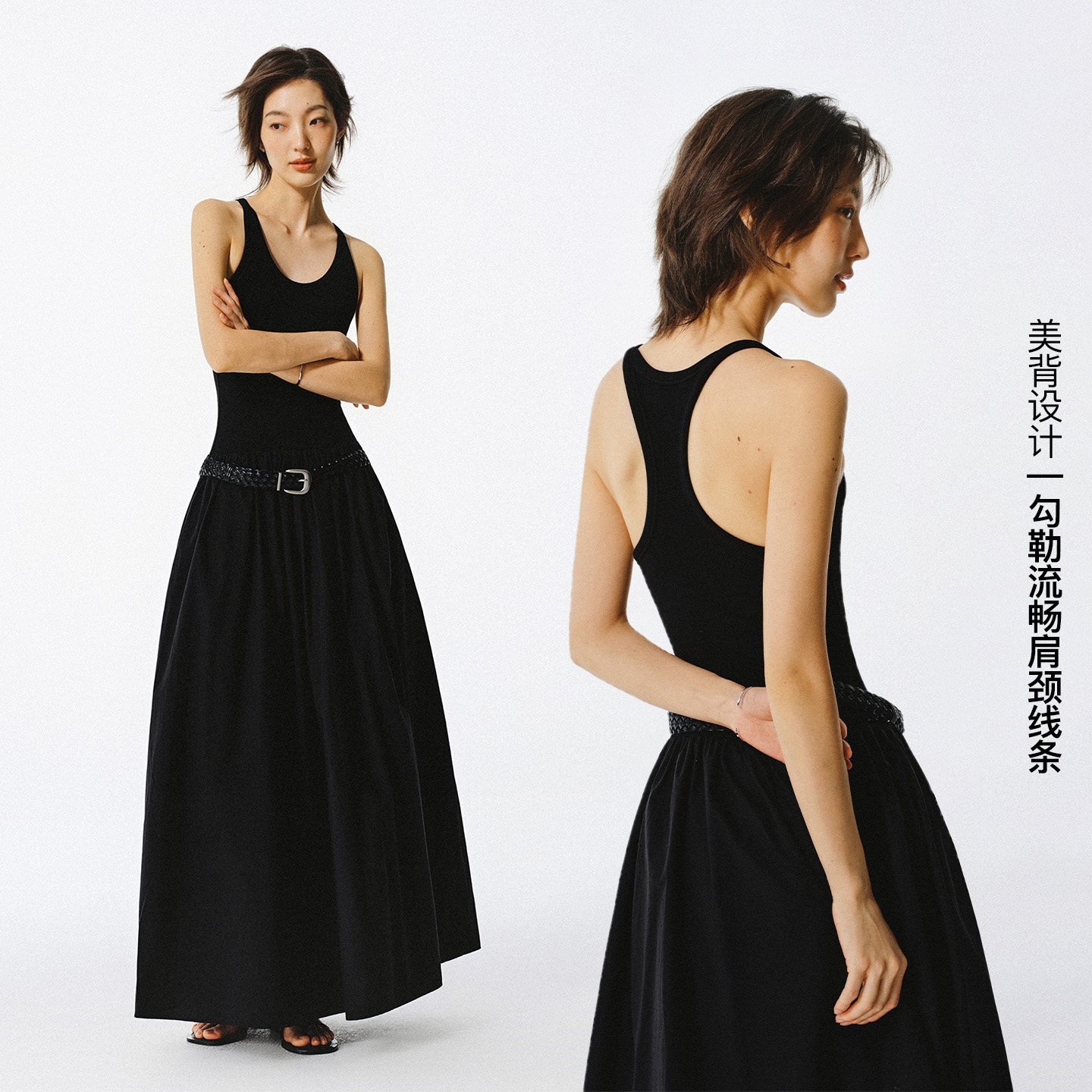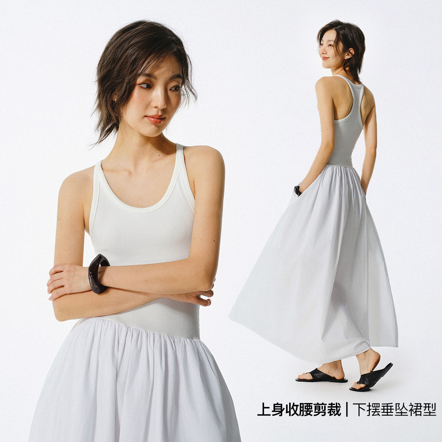 asomesome宋祖儿同款白色大裙摆吊带连衣裙女针织拼接收腰长裙
