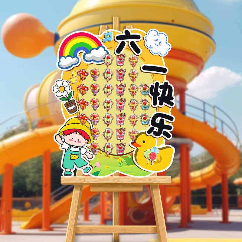 六一儿童节装饰幼儿园小学教室场景布置签到板请你吃糖61迎宾立牌