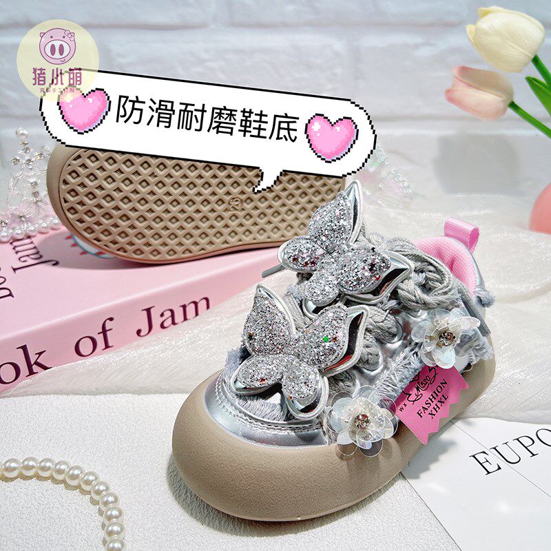 女童公主风厚底加绒板鞋百搭秋冬款儿童二棉鞋子2024新款女款女鞋