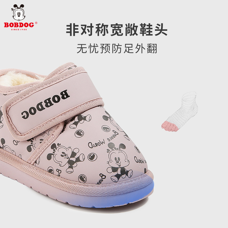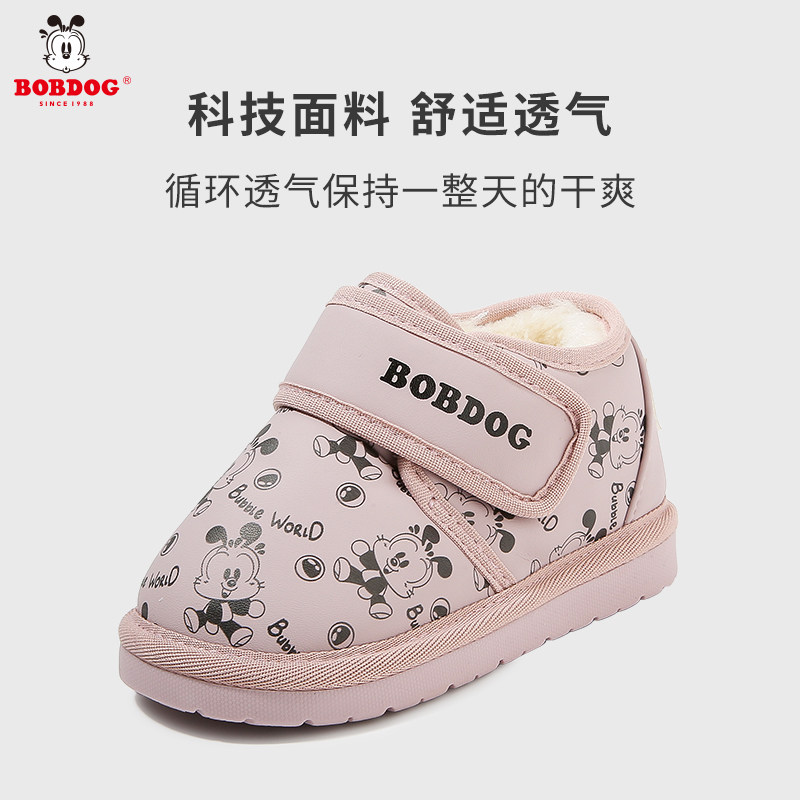 巴布豆学步鞋冬季男女款小童低帮雪地靴加绒二棉鞋女宝宝皮面靴子