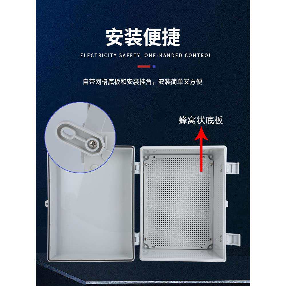 塑料防水箱户外用防雨合页卡扣基业箱壁挂式电气控制箱带网格底板