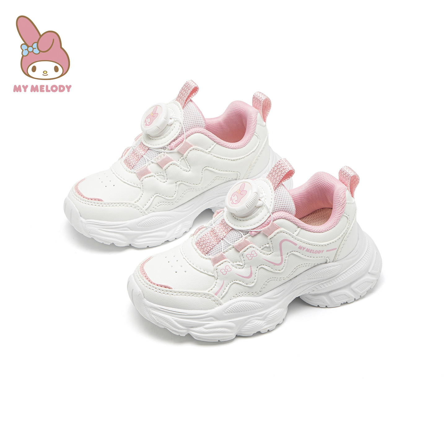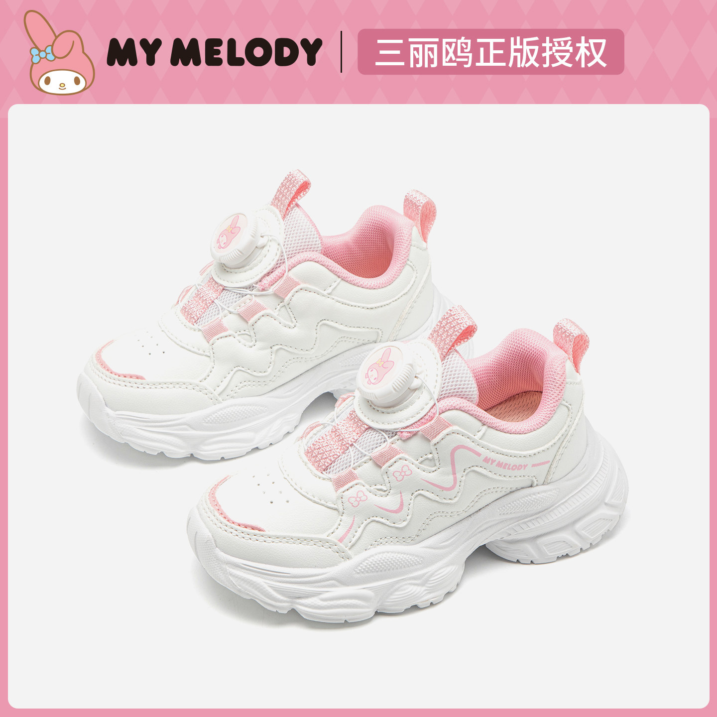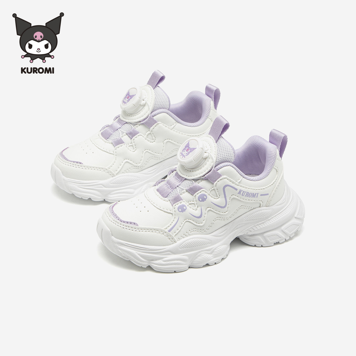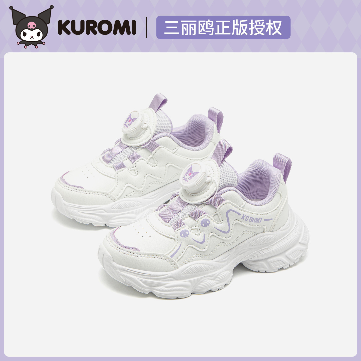 库洛米女童小白鞋儿童白色运动鞋秋季新款女孩旋转扣鞋小学生白鞋
