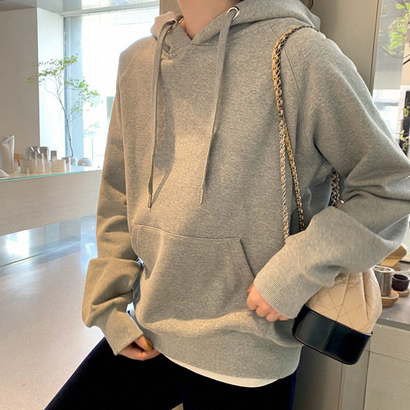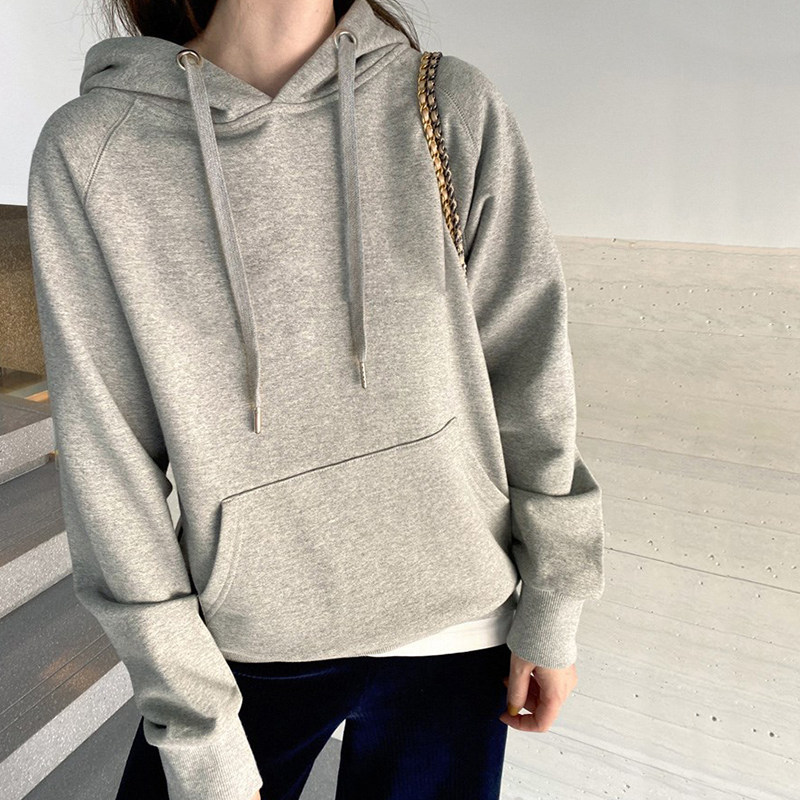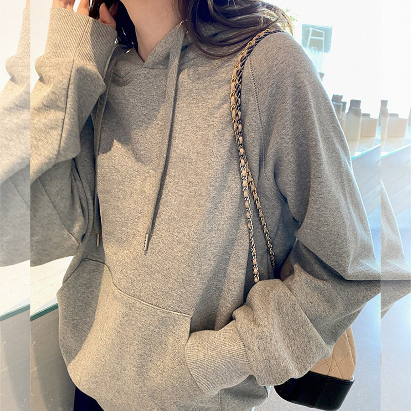 连帽灰色卫衣女款秋冬2025新款爆款套头宽松慵懒风长袖小个子上衣