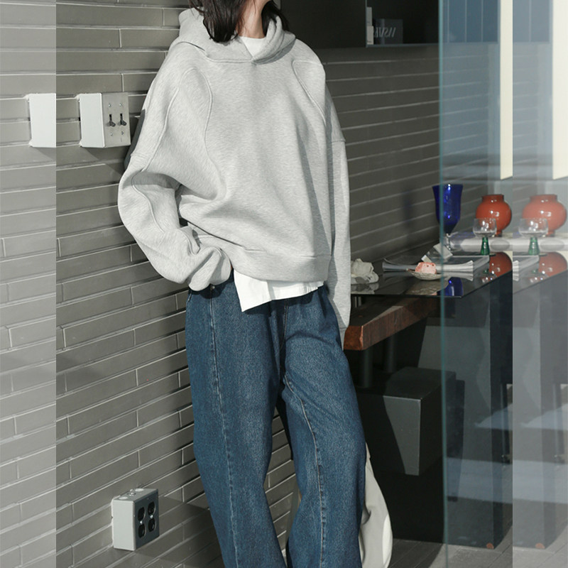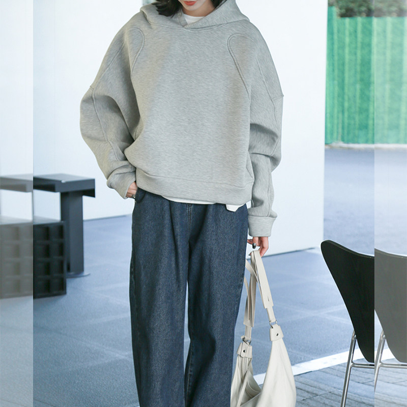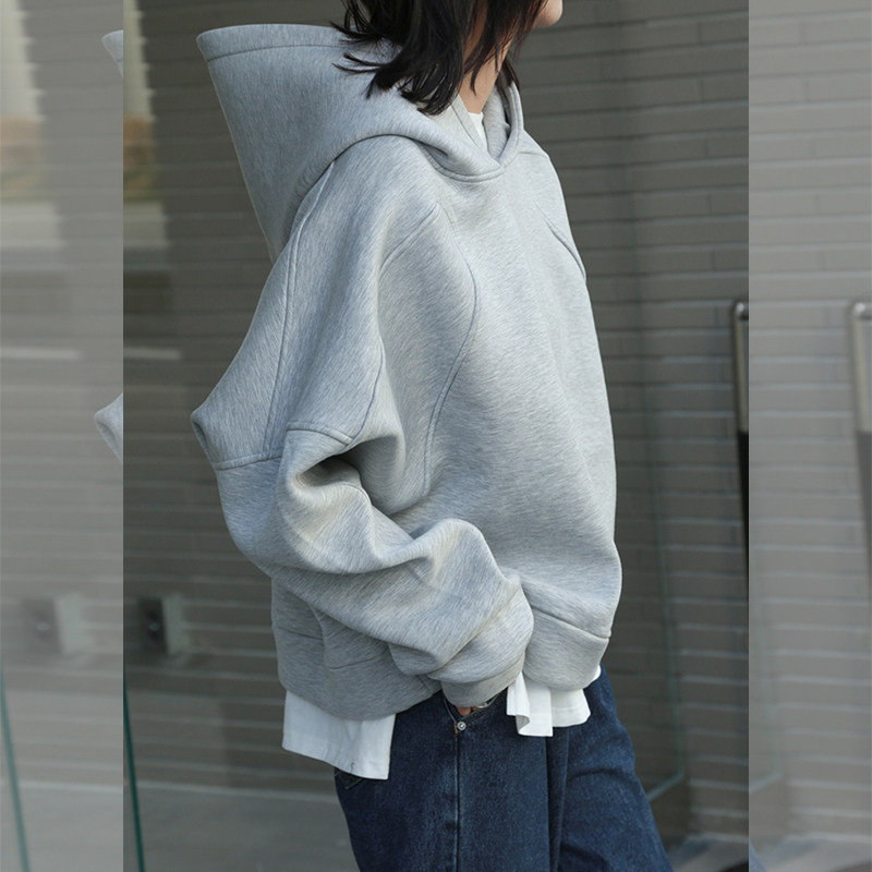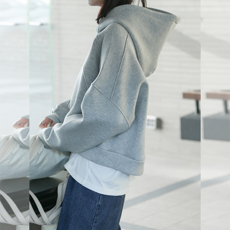 巨好看的短款连帽灰色卫衣女款秋冬新款套头韩系慵懒风小个子上衣