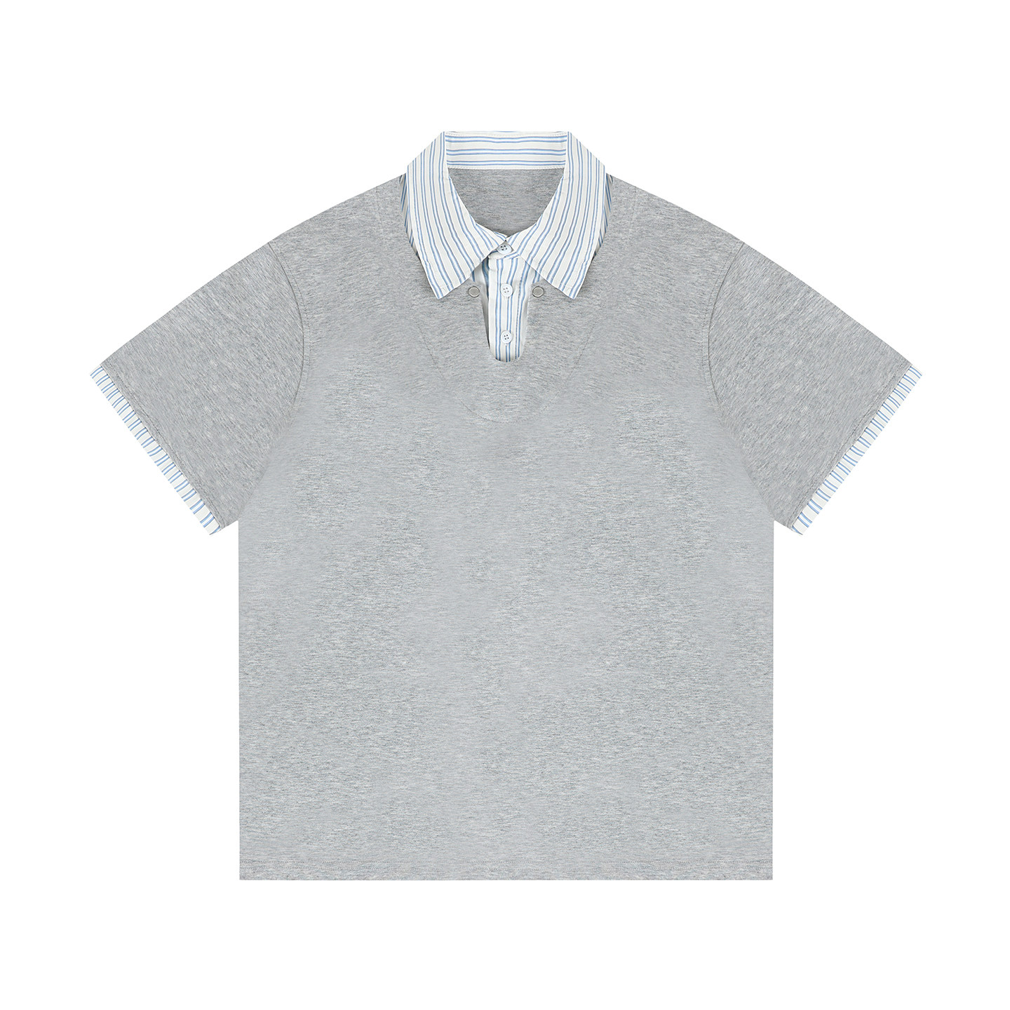 GOOZI MADE 假两件条纹Polo衫短袖t恤男夏季竹节棉青少年拼接半袖