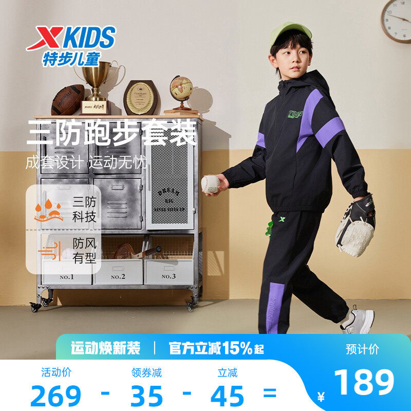 特步童装儿童拼色套装男童2026年新款中大童运动服春季夹克两件套
