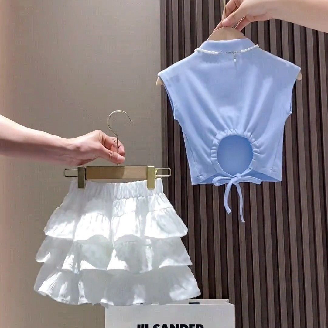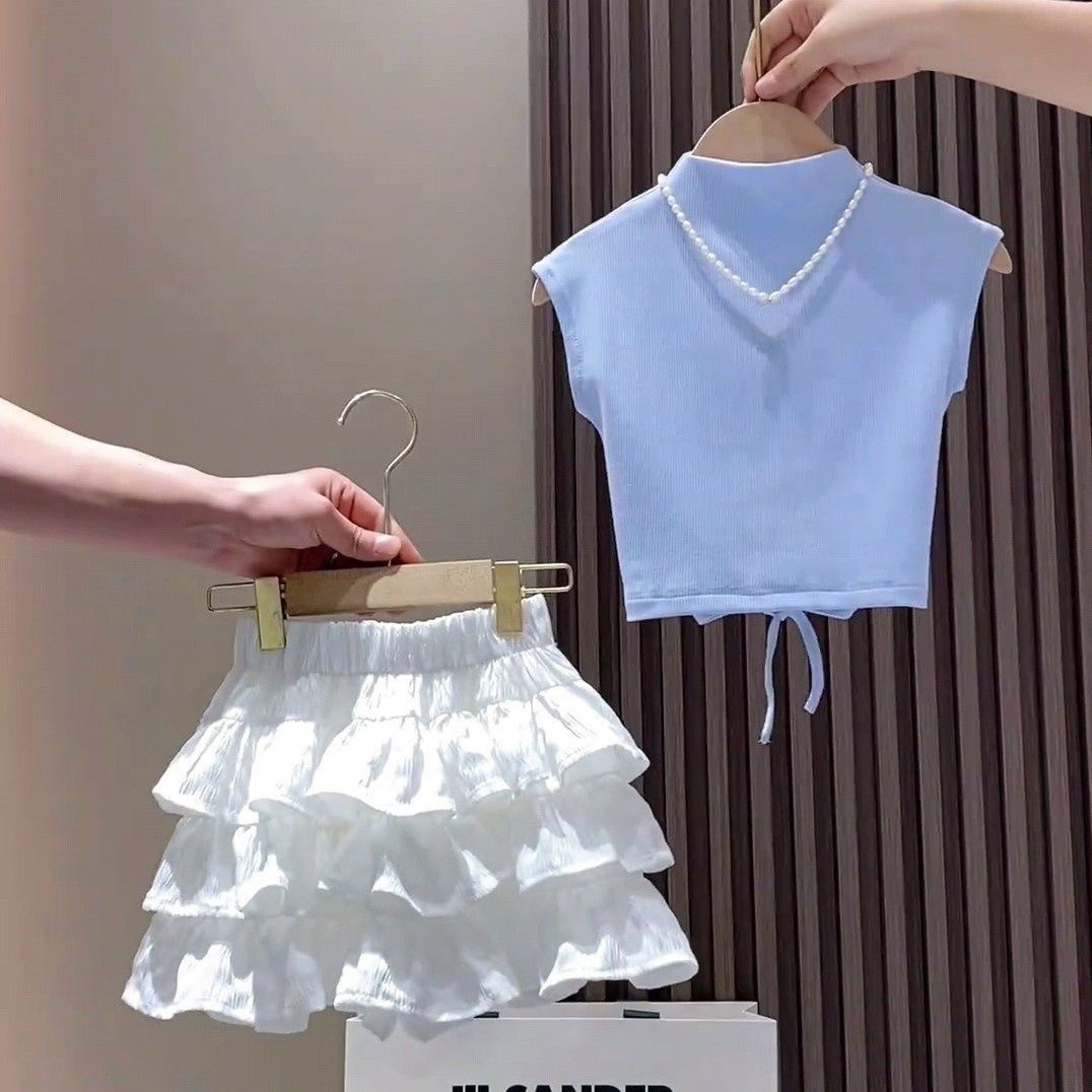 女童夏款套装2025新款儿童短袖T恤百褶裙两件套女宝裙裤洋气夏装