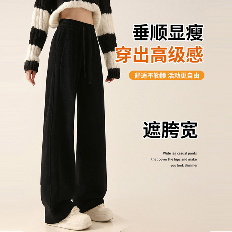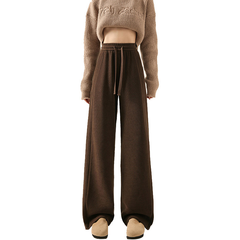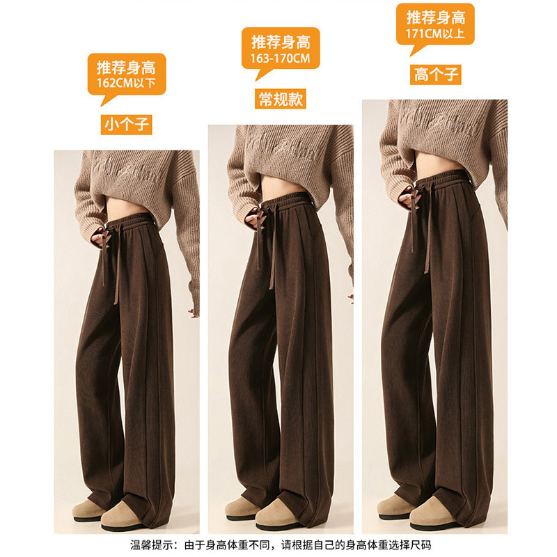 咖色加绒窄版阔腿裤女2026新款春秋季直筒休闲运动美拉德棕色裤子