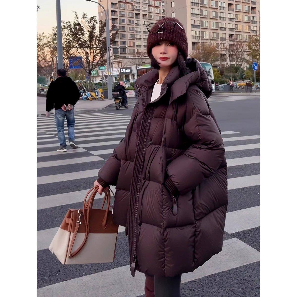 女款中长款加厚过膝韩版高级感面包服百搭冬装小个子外套棉服外套