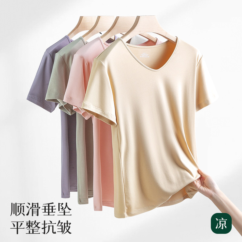 60S莫代尔睡衣上衣单件女款短袖夏季薄款冰丝男士大码家居服T恤