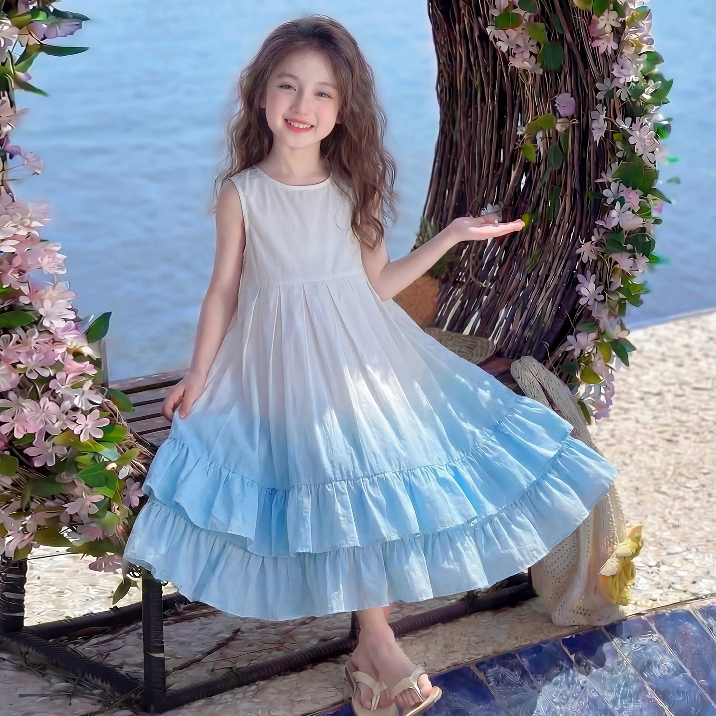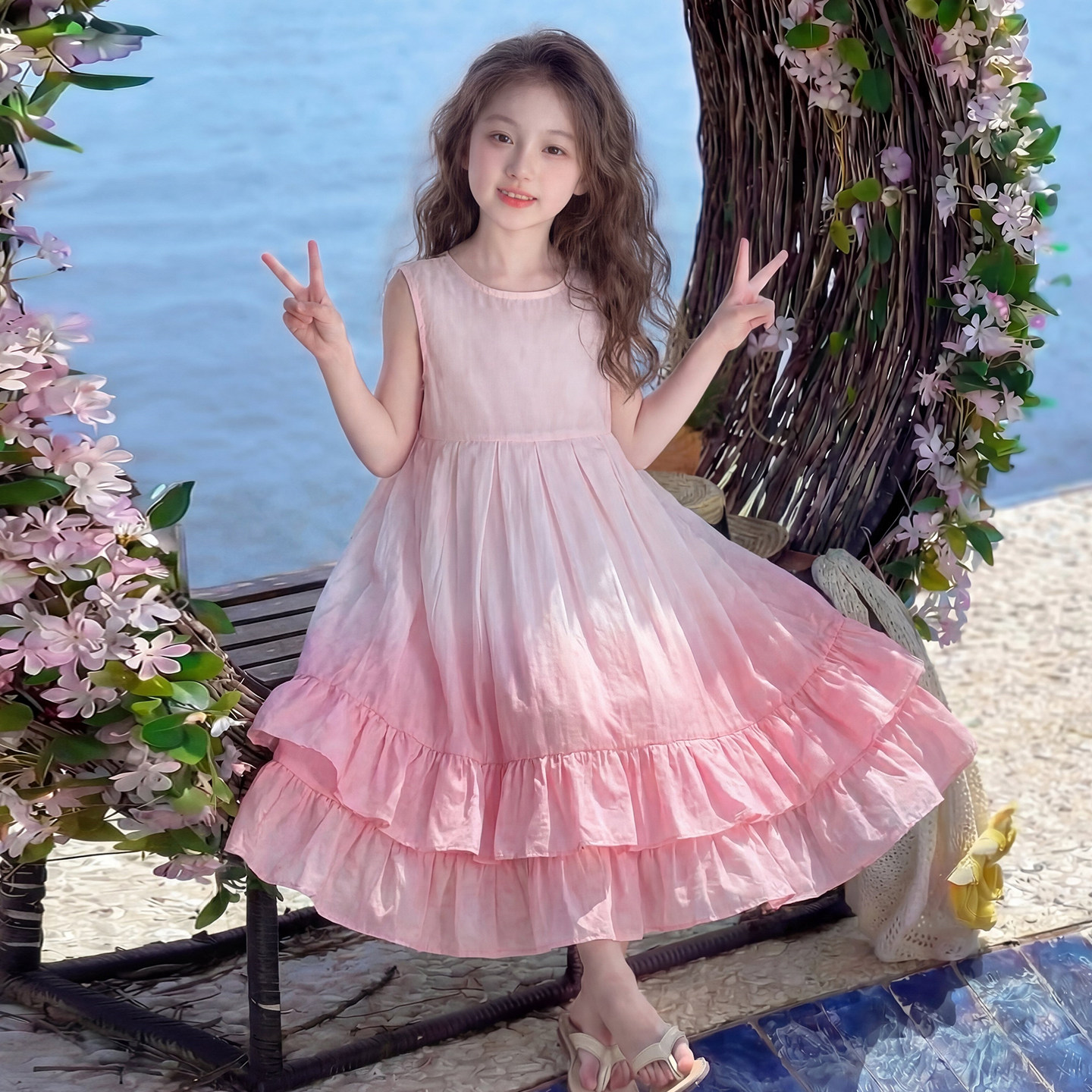 女童连衣裙夏季2026新款儿童时髦韩版海边度假公主裙女孩夏装裙子