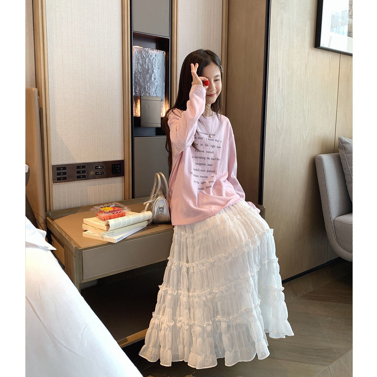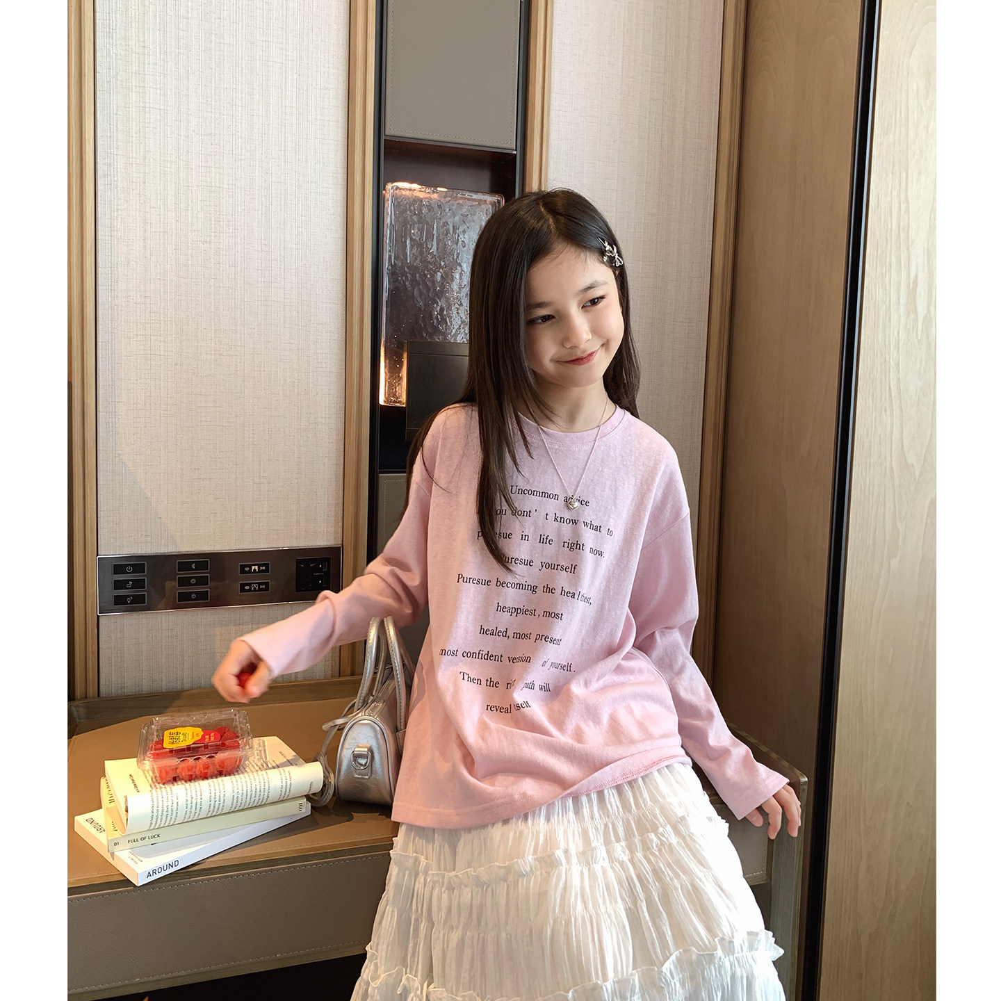 女大童松弛感字母长袖2026春夏新款青少年休闲宽松T恤亲子薄罩衫