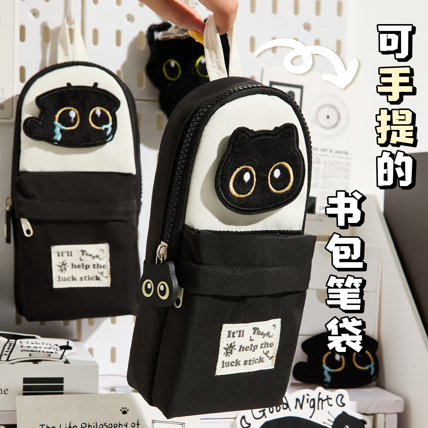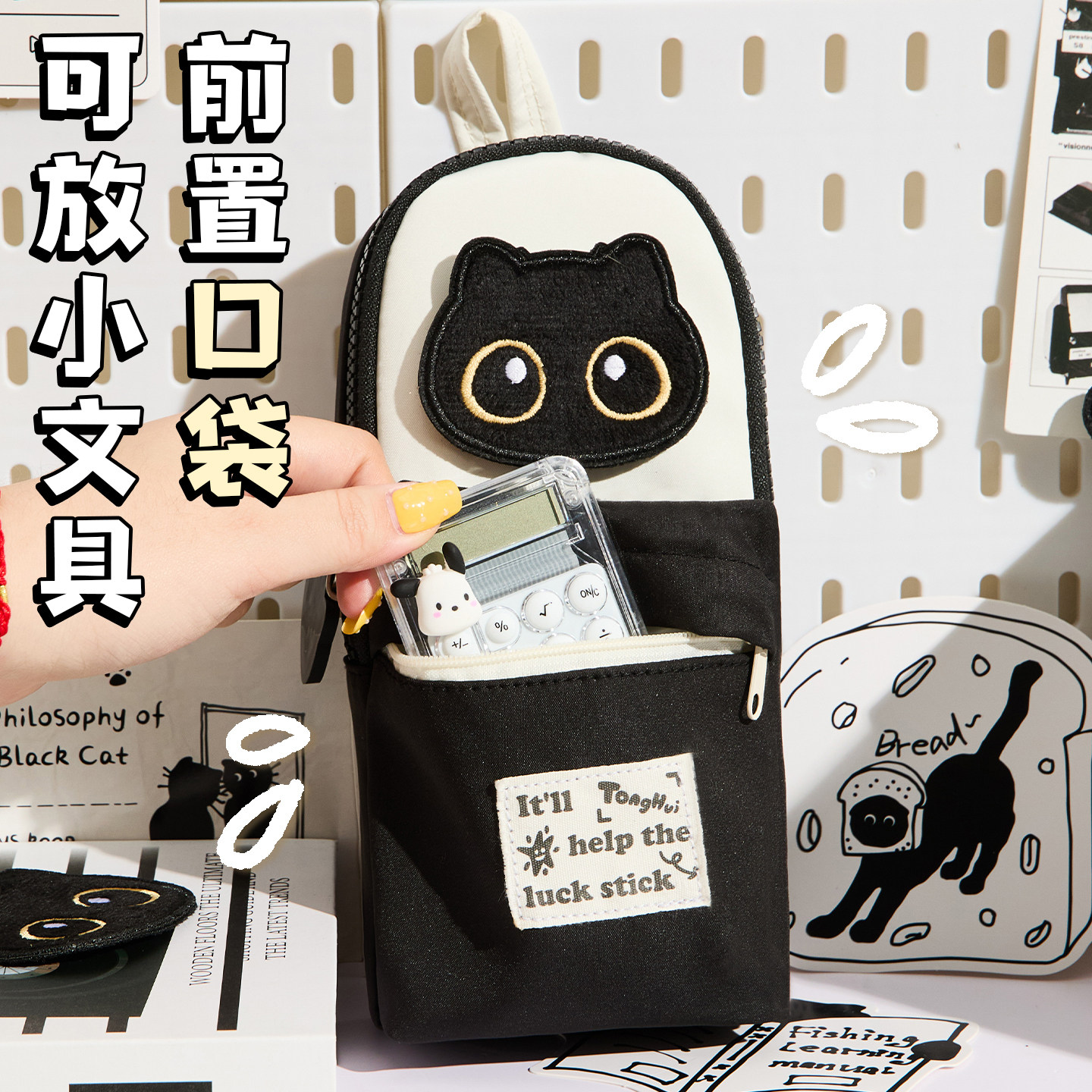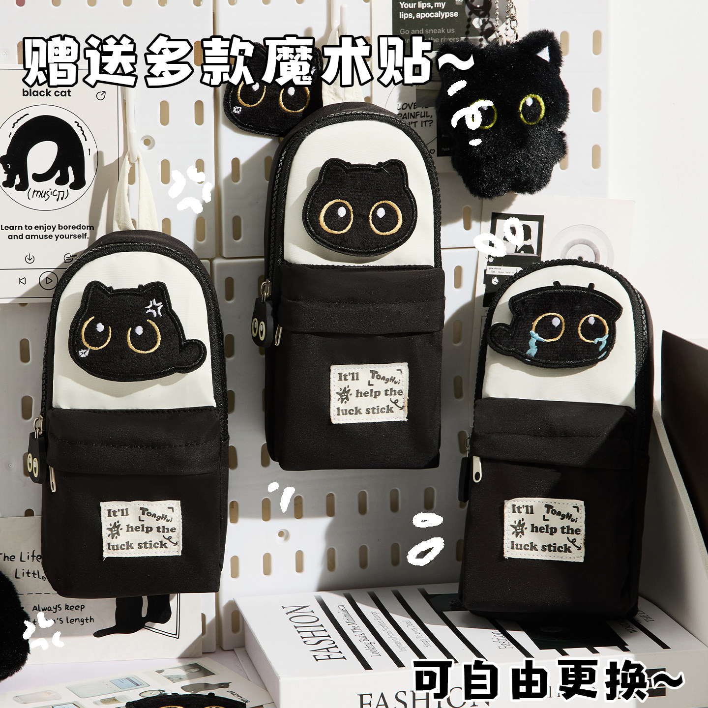 猫咪魔术贴笔袋高颜值ins风女生2025新款文具盒大容量简约铅笔盒可爱小众小学生初高中生少女心书包铅笔袋