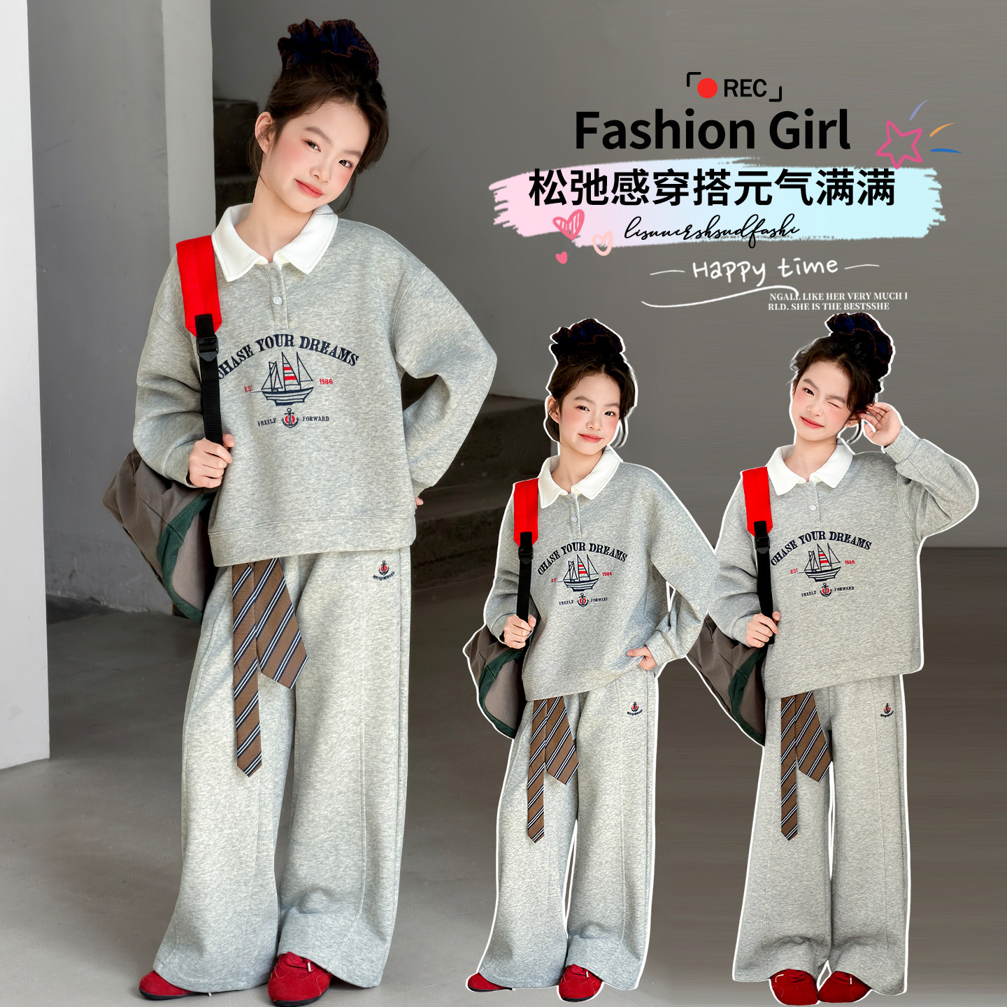 女童套装2026年新款春秋装洋气时髦中大童韩版字母印花休闲两件套