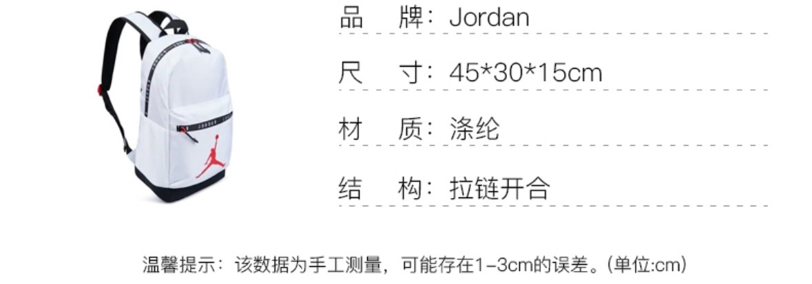 Jordan耐克包乔丹包百搭休闲运动大容量日常双肩包白色CK3898-100