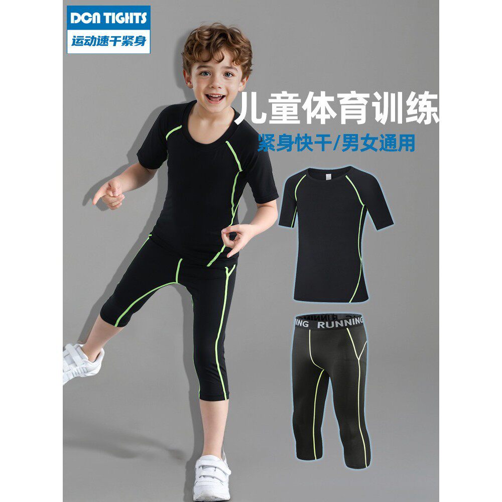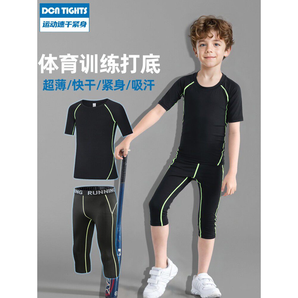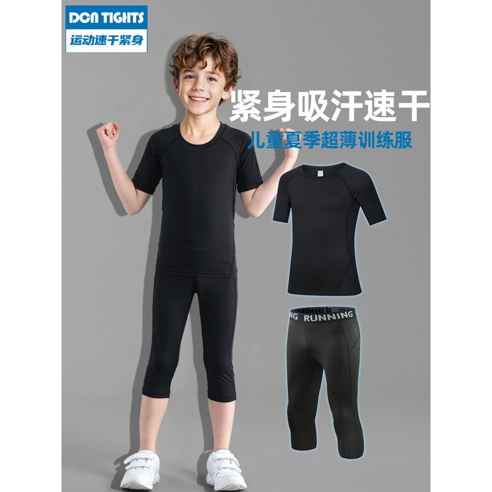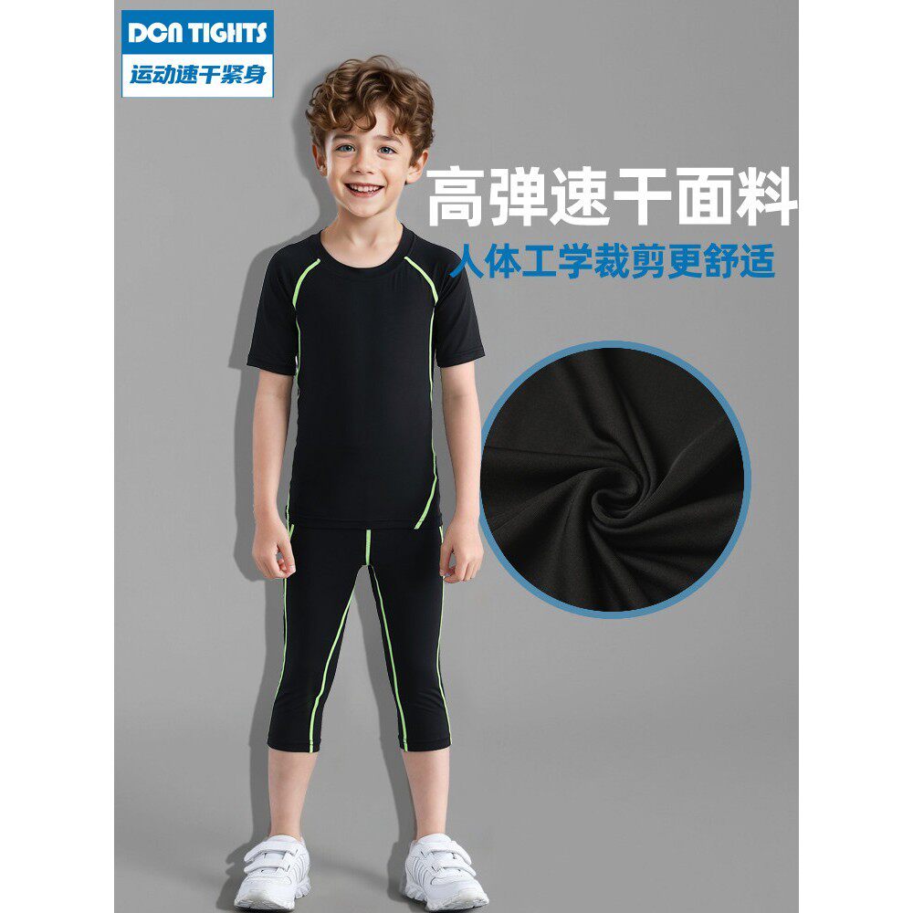夏季儿童运动速干裤七分篮球打底短袖紧身衣体能训练服套装轻薄款