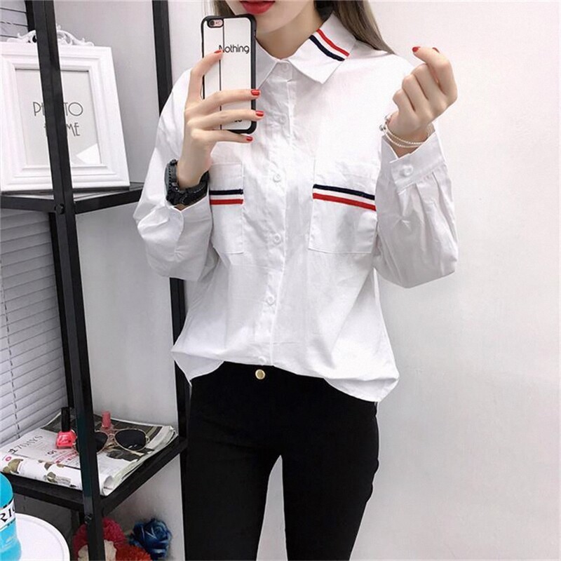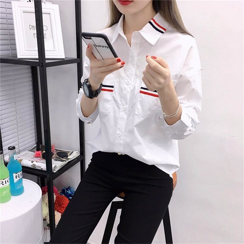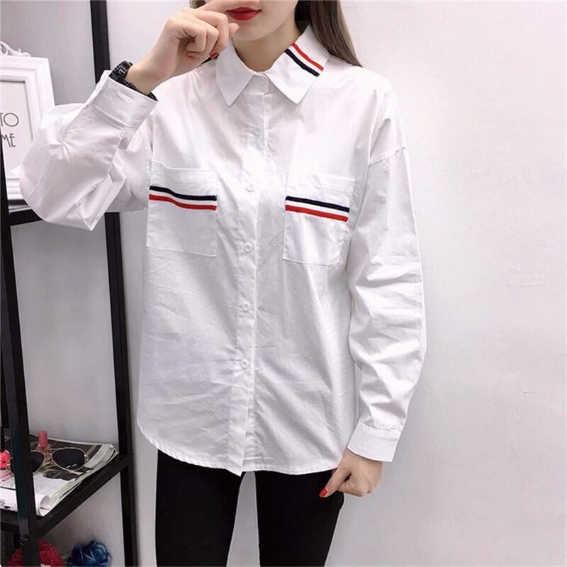 长袖衬衫女春装上衣服夏秋新款初中高中学生韩版宽松休闲白色衬衣