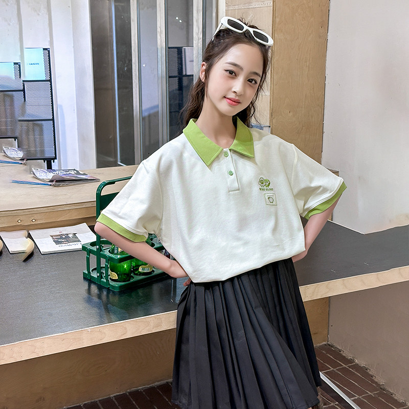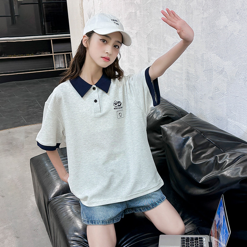 女大童polo衫2026新款短袖t恤夏装上衣纯棉宽松初中生女孩青少年